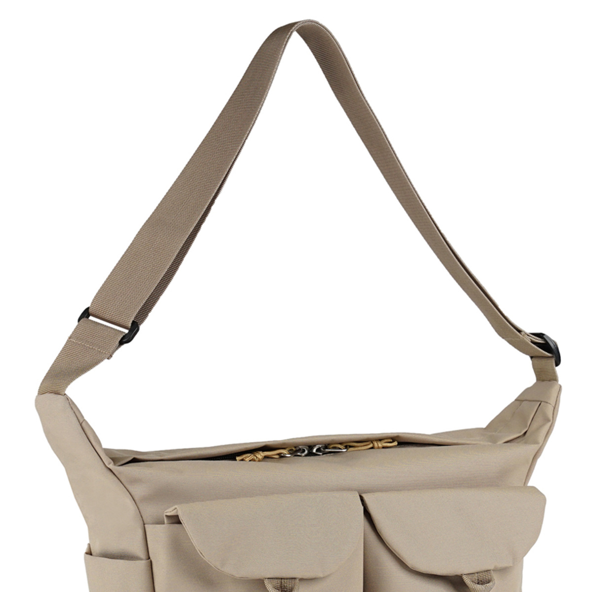 コンパクトながらも収納力があり、使い勝手がいいショルダーバッグです。大きく開くファスナー仕様で機能的なポケットが沢山付いているので、通勤や週末のお出かけに活躍します。