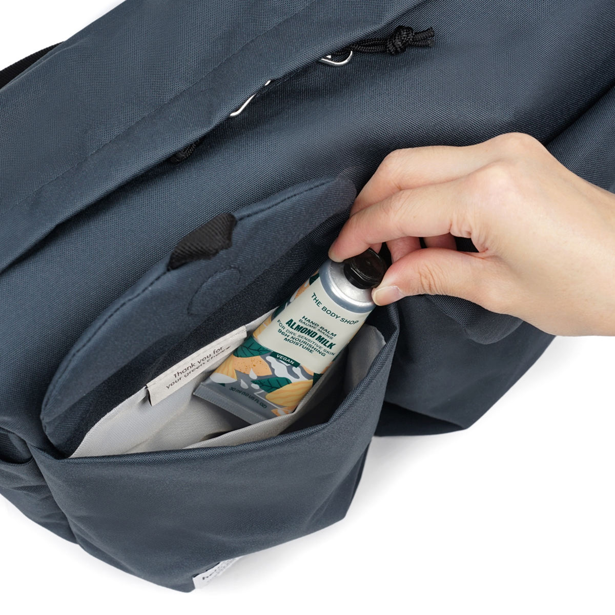 サイドポケットは、ハンカチやティッシュなどさっと取り出したい小物収納に便利です。