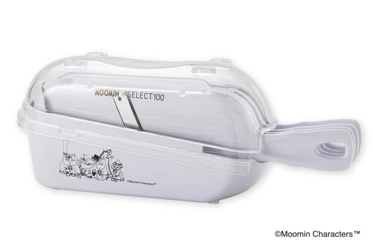 幅広い世代に人気の世界的キャラクター・ムーミンと貝印がコラボしたキッチンツールシリーズの調理器セットです。容器にムーミン谷の仲間たちが描かれています。