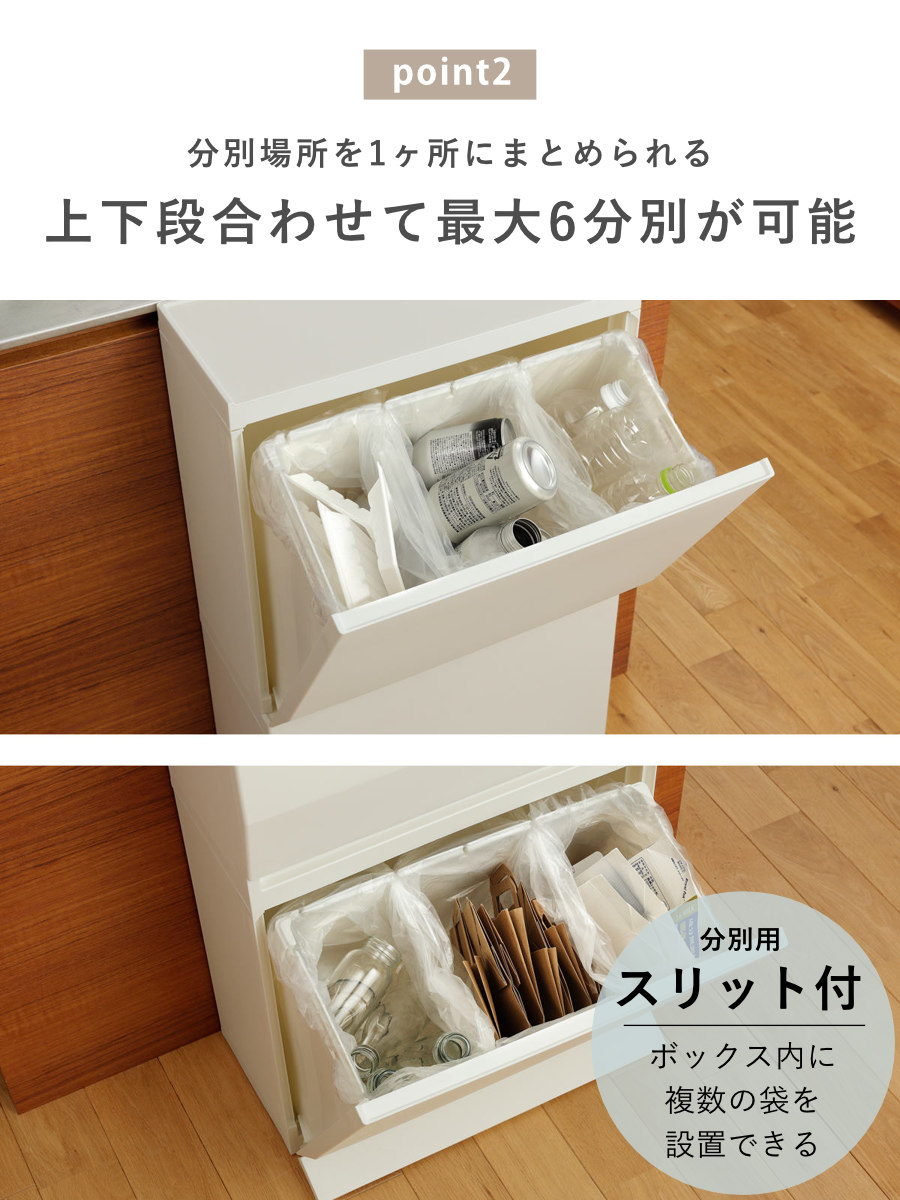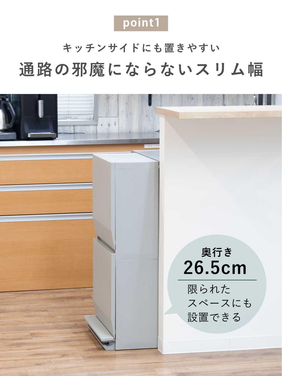 ![]() 棚下にも収まる 1段22.5L | ![]() キッチンと高さがそろう 2段45L 【▲このページの商品】 |