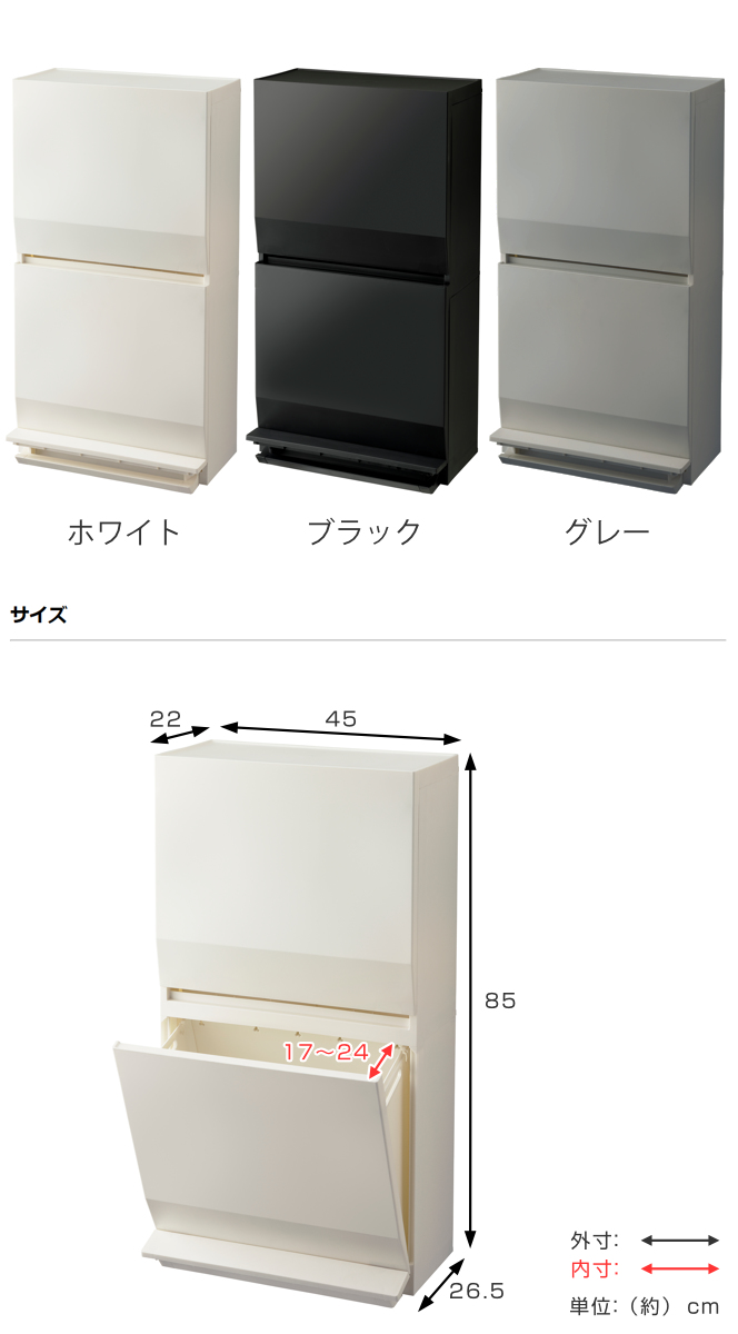 | 対応サイズ | ゴミ袋:45L(約 幅65×高さ80cm) |