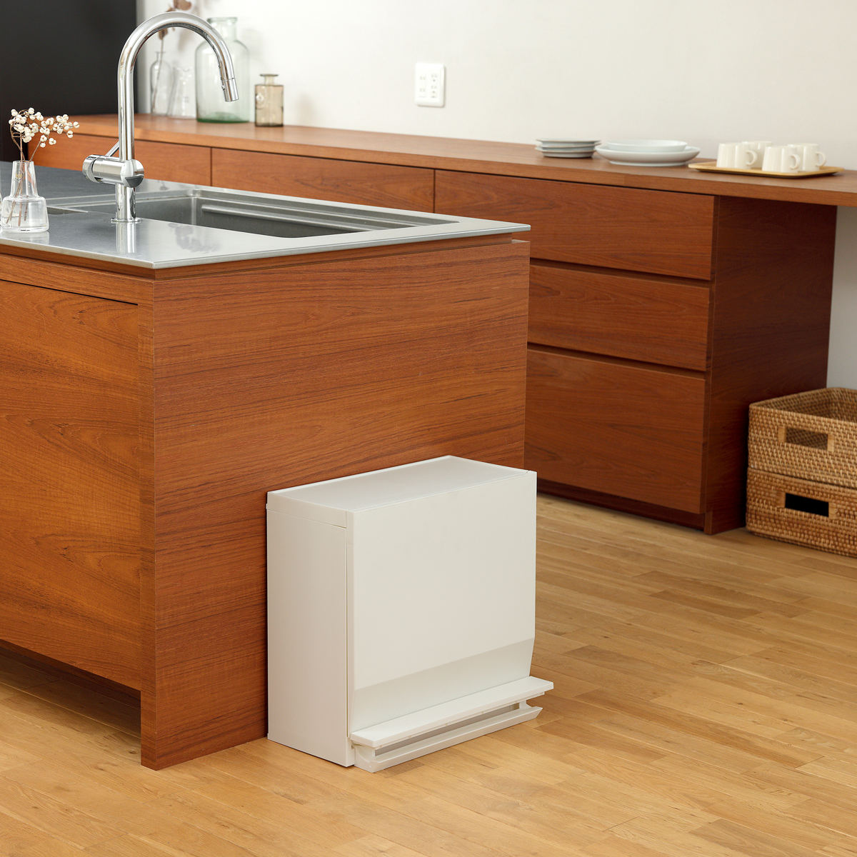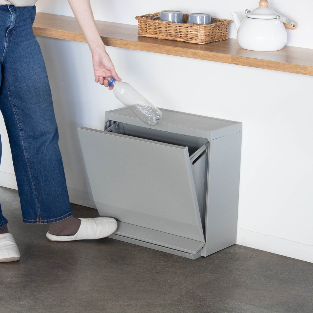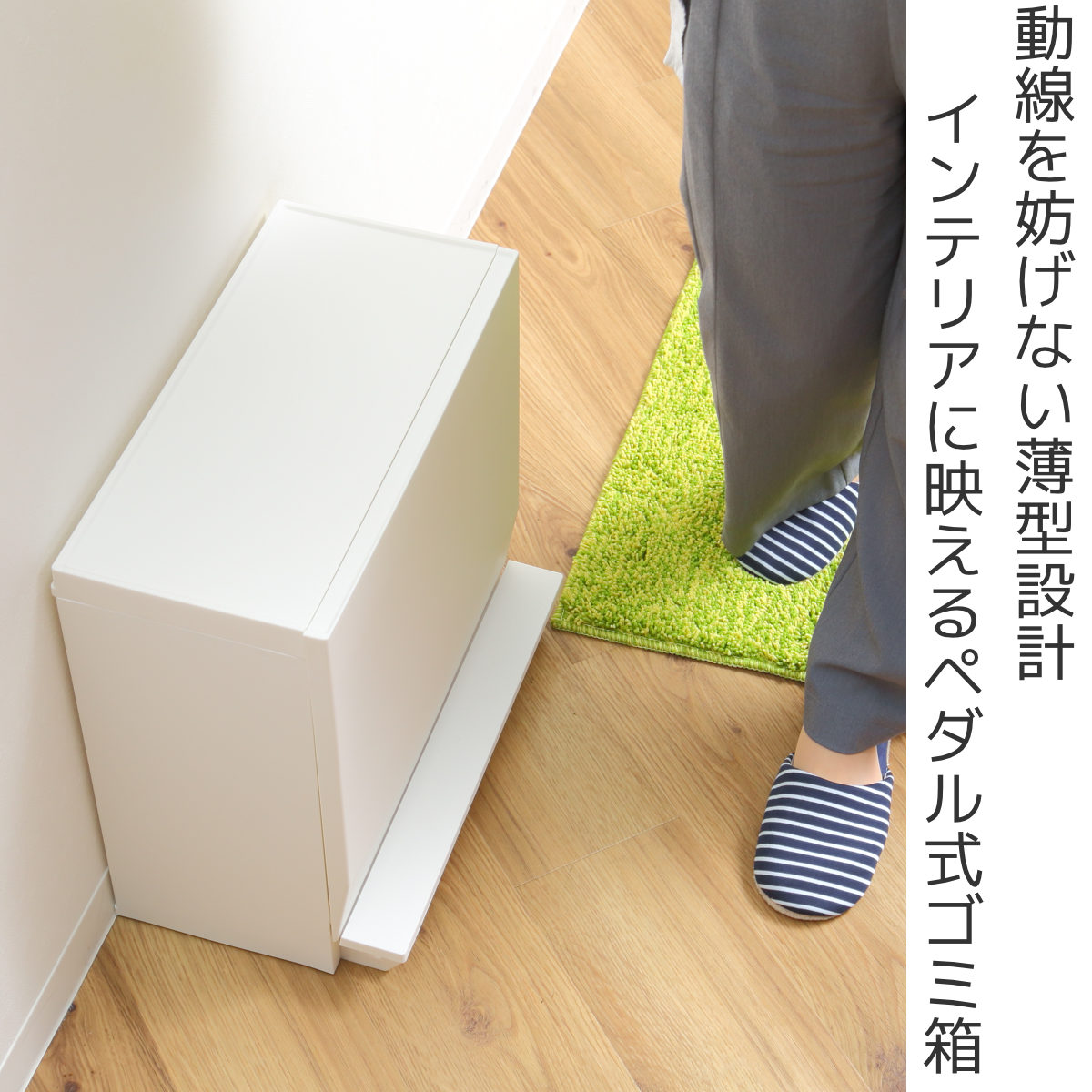 キッチンサイドや廊下、リビングなどのちょっとしたスペースに。 奥行たったの26.5cmとスリム設計なので、生活動線をしっかり確保できます。 すぐ手の届くところに置ける、だけど邪魔にならないゴミ箱です。