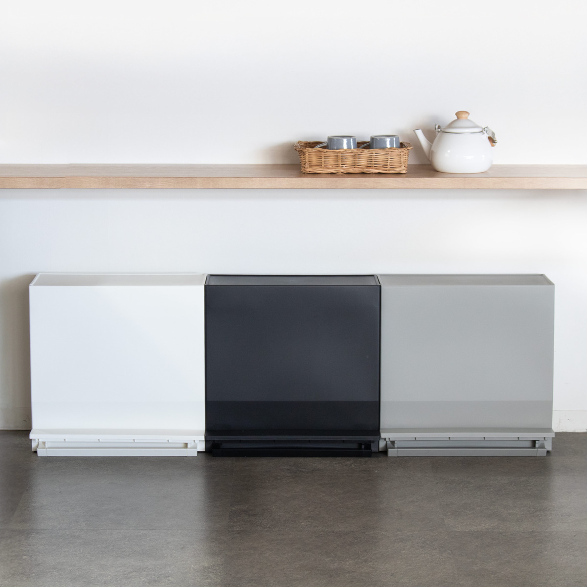1台で最大3種類のゴミを分別できて省スペースです。 分別場所を1か所にまとめられるので、覚えやすく家族共用にもぴったりです。