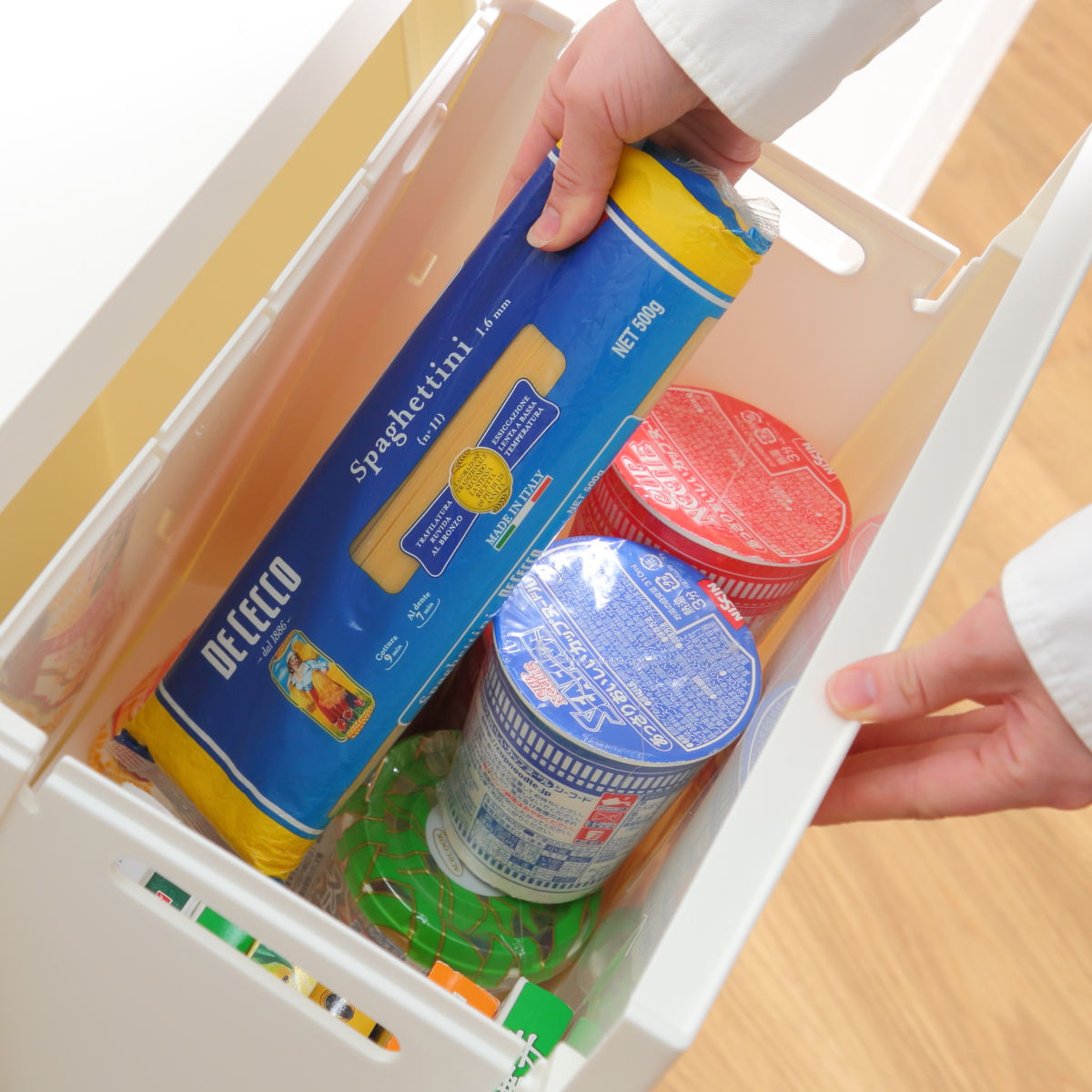 ![]() 棚下にも収まる 1段22.5L 【▲このページの商品】 | ![]() キッチンと高さがそろう 2段45L |