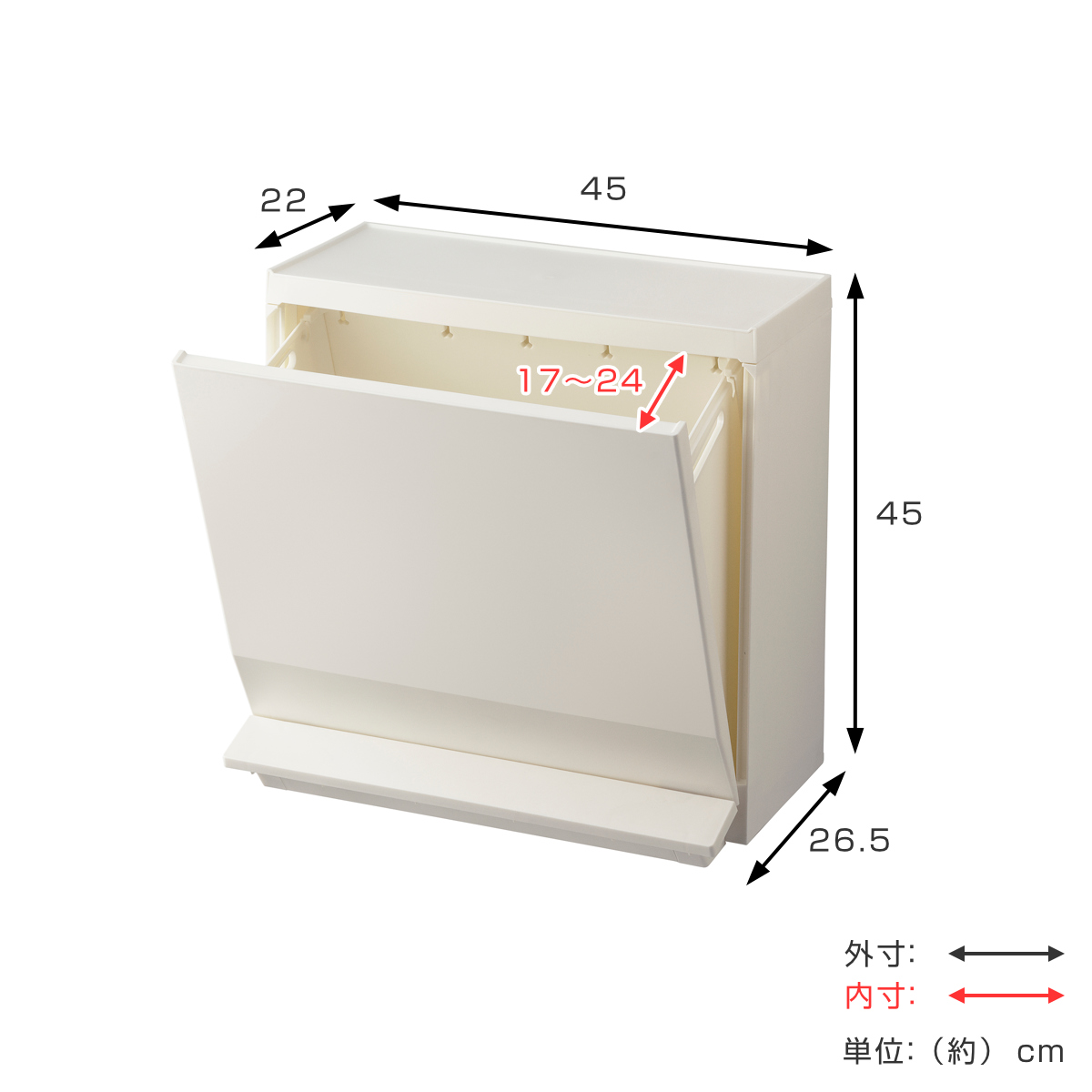 | 対応サイズ | ゴミ袋:45L(約 幅65×高さ80cm) |