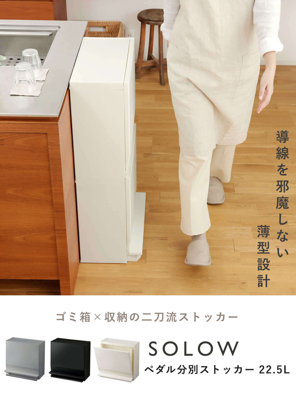 ![]() 棚下にも収まる 1段22.5L 【▲このページの商品】 | ![]() キッチンと高さがそろう 2段45L |