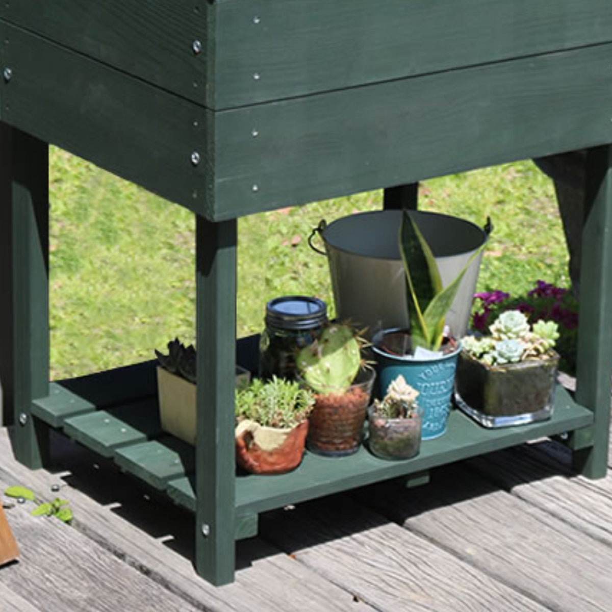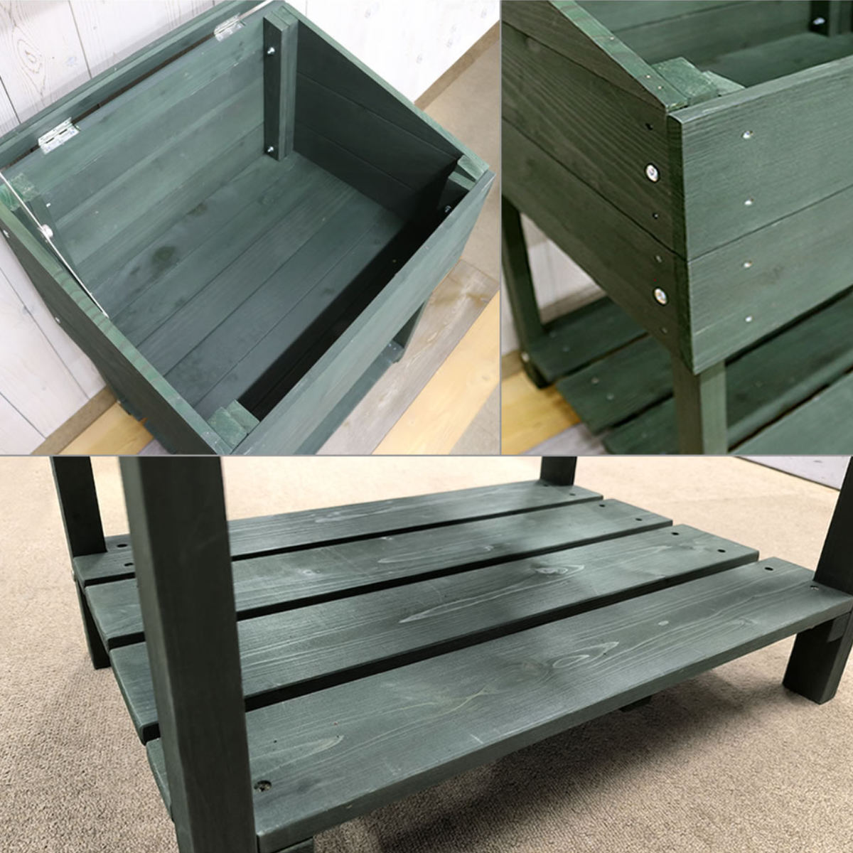 下部の収納棚に頻繁に使うガーデングッズを置けば、作業しやすくなります。また、奥行約46cmと設置しやすいサイズ感なので室内にも置きやすいです。