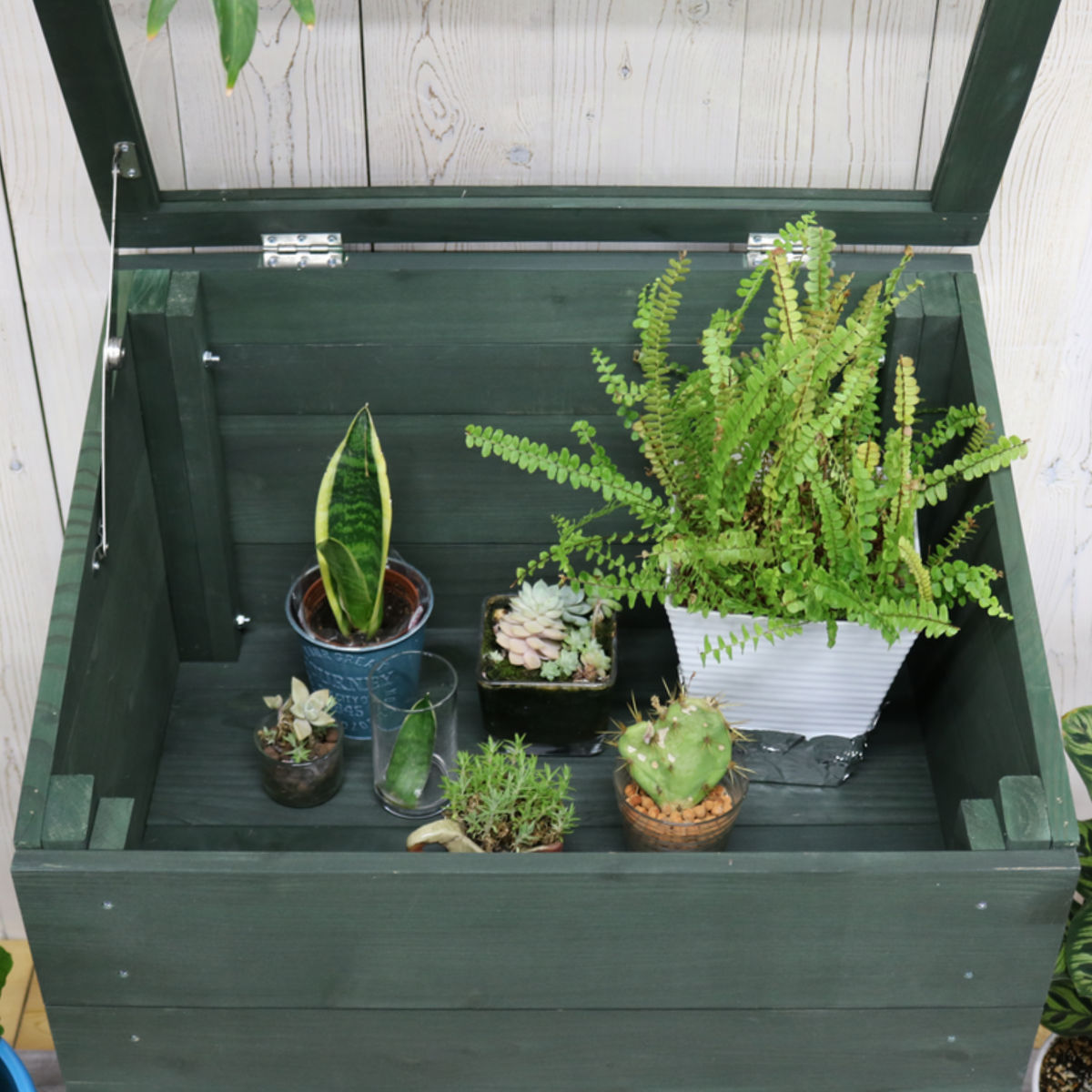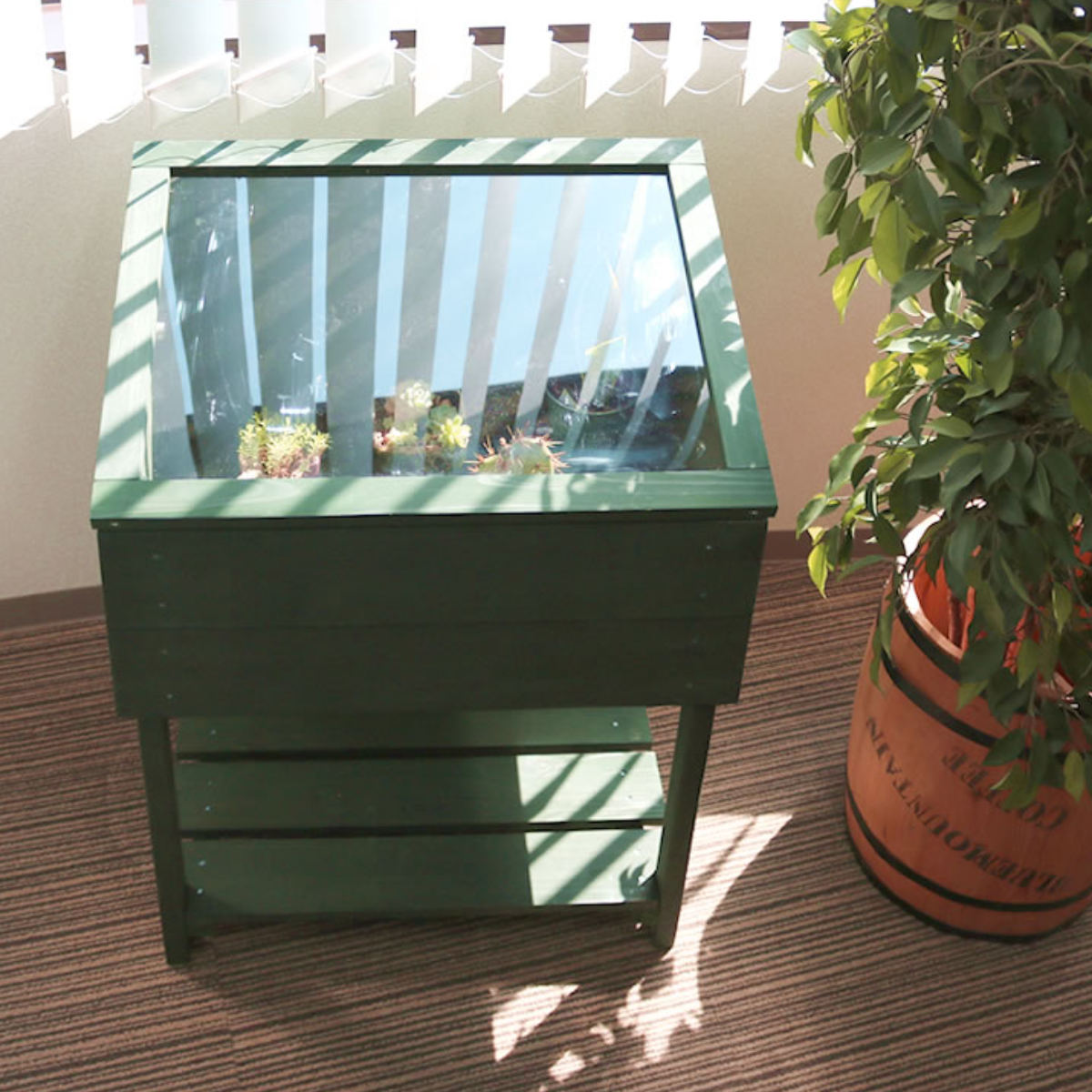 日光による保温効果で、ご家庭のお庭やベランダの植物を寒さや雨風、雪、霜から守ります。猫や鳥、虫、野生動物などの被害も最小限に抑えられます。暖かい日は扉を開けて、プランターラックとしてお使いいただけます。