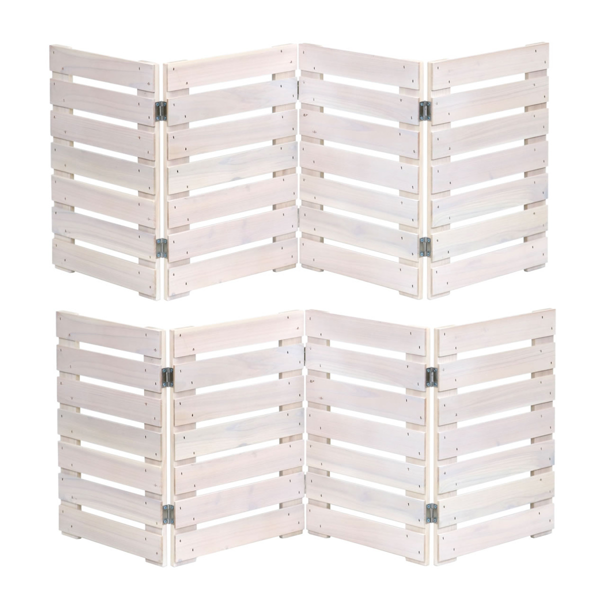 好きな時に出してしまえる折り畳めるウッドミニフェンス2枚組です。ボーダーの天然木フェンスは、爽やかでナチュラルな風合いが魅力です。立ち入りを制限したい場所や道路・花壇・駐車場、お隣との境目など様々な場所でお使いいただけます。