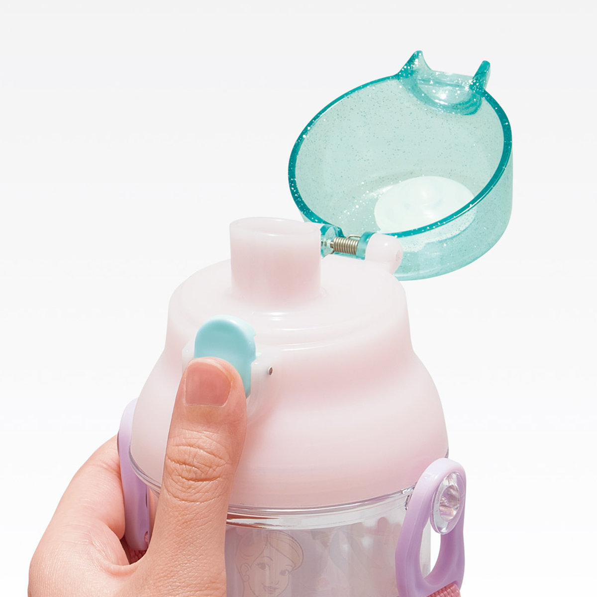 水筒の蓋はボタンを押すだけで開けることができるワンタッチ式です。飲み終わったら蓋をカチッと閉めるだけなので、小さなお子様でも簡単に開閉できます。