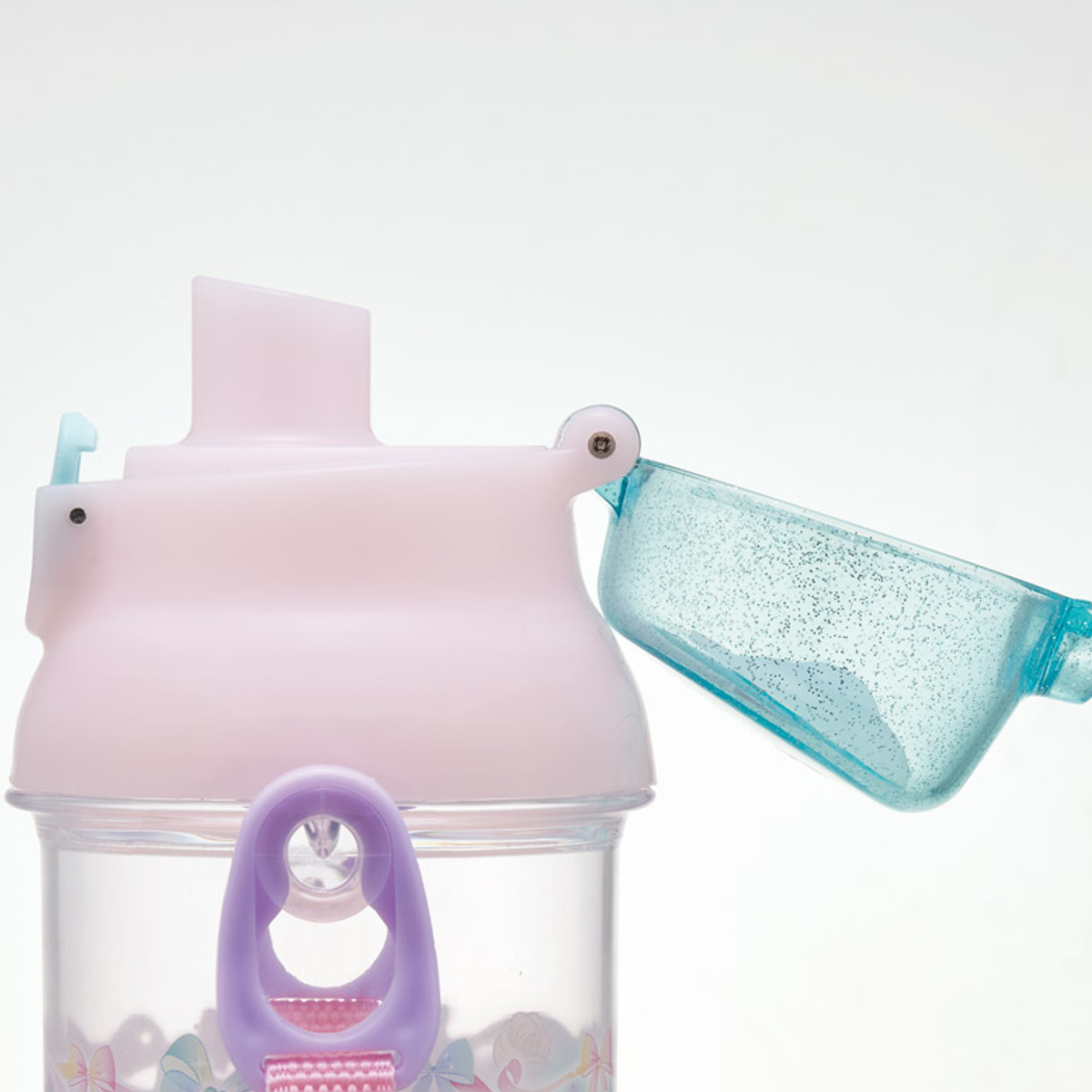 軽くて使いやすい、食器洗い乾燥機OKのプラスチック製の直飲みタイプの水筒です。中身が見えるクリアボディは透明度の高いPET素材を使用しています。