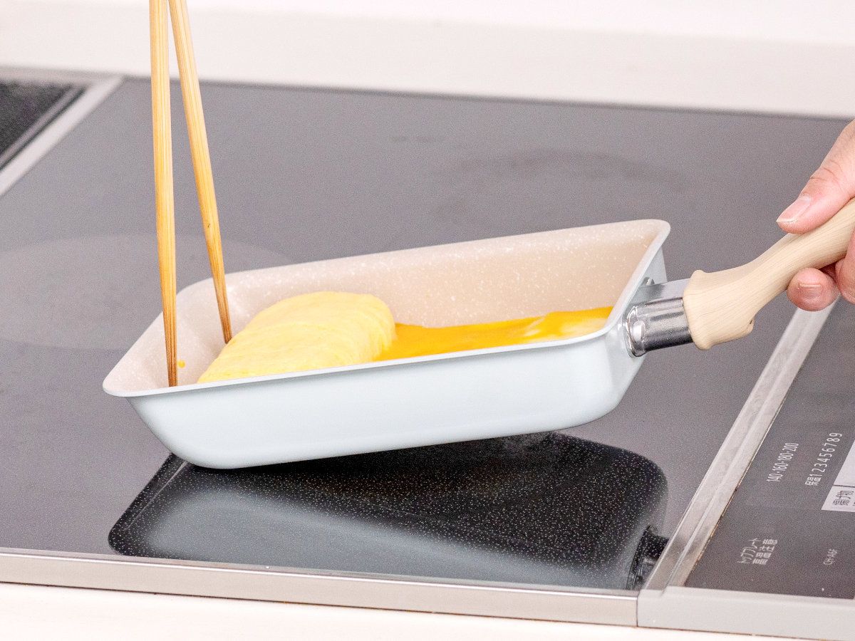 菜箸やフライ返しが入れやすいように先端に傾斜が付いています。卵の形を崩すことなく、スムーズに卵を返すことができます。