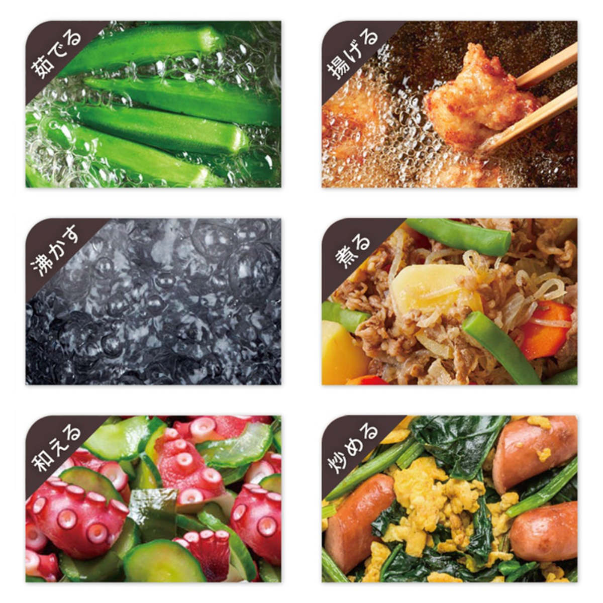 「茹でる・揚げる・沸かす・煮る・和える・炒める」の6役使える便利なポットです。6通りの使い方ができるので、思い立った時にマルチポット1つで気軽に調理ができます。可愛いカラーのマルチポットは、置くだけでキッチンがパッと明るくなります。