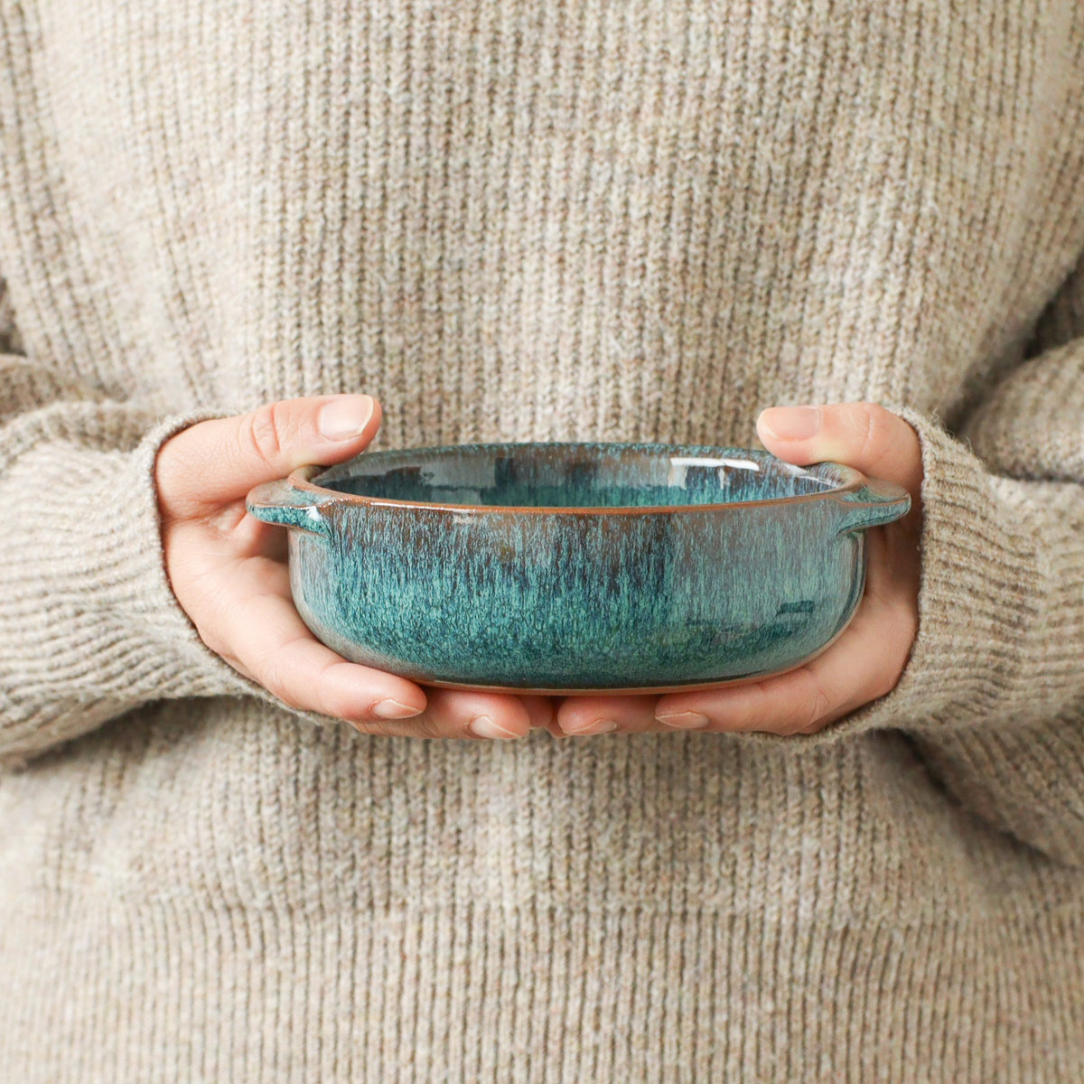 13.2cmの両手キャセロールは、一人分の煮込み料理やグラタン、スープにぴったりのサイズです。オーブン調理からそのままテーブルに出せるので、料理を温かいうちにサーブできます。