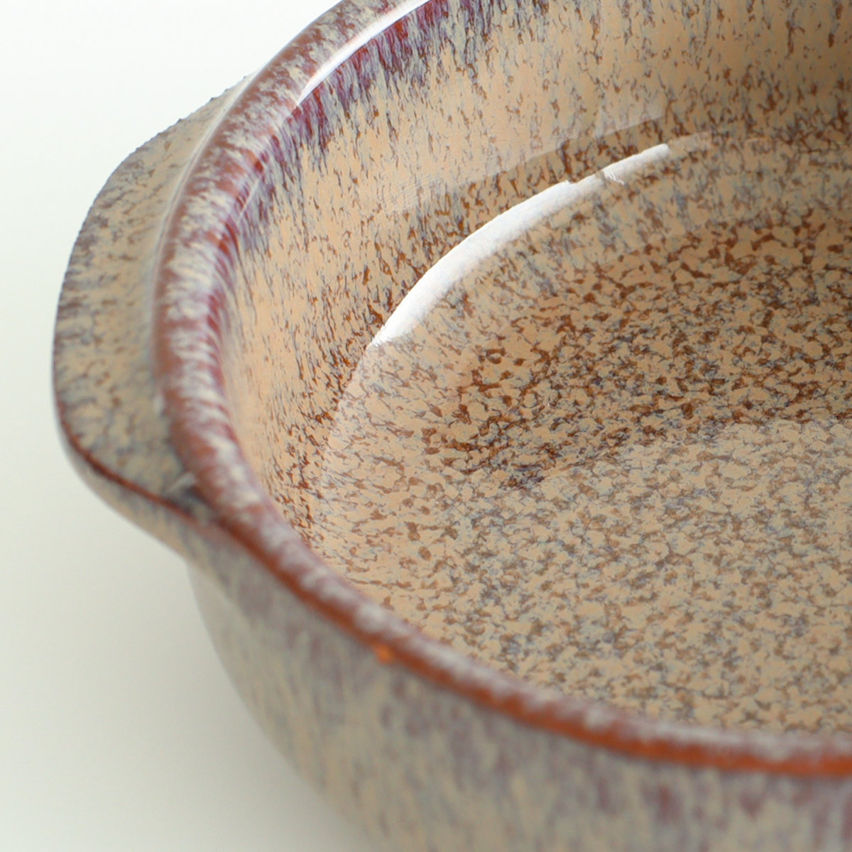 陶器の持つ土の温かみと窯変釉が織りなす奥行きの深さを感じるデザインの「ELMO(エルモ)」シリーズ。食卓にそのまま出せる陶器のオーブンウェアなので、料理の幅が広がり、いつもの食卓を温かな雰囲気に変えてくれるオーブンウェアです。