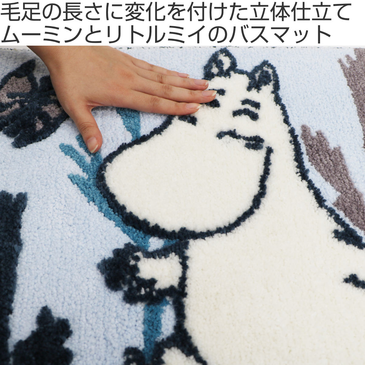 ムーミンとミイが楽しそうにおさんぽをしているシーンを表現したバスマットです。ふんわりやさしい色使いとかわいい絵柄がバス空間を華やかにしてくれます。