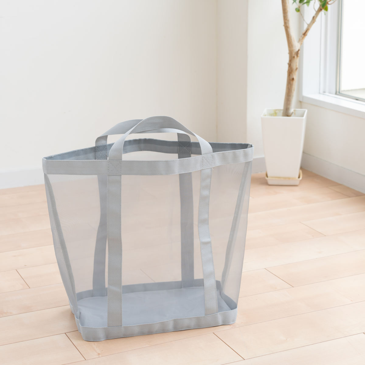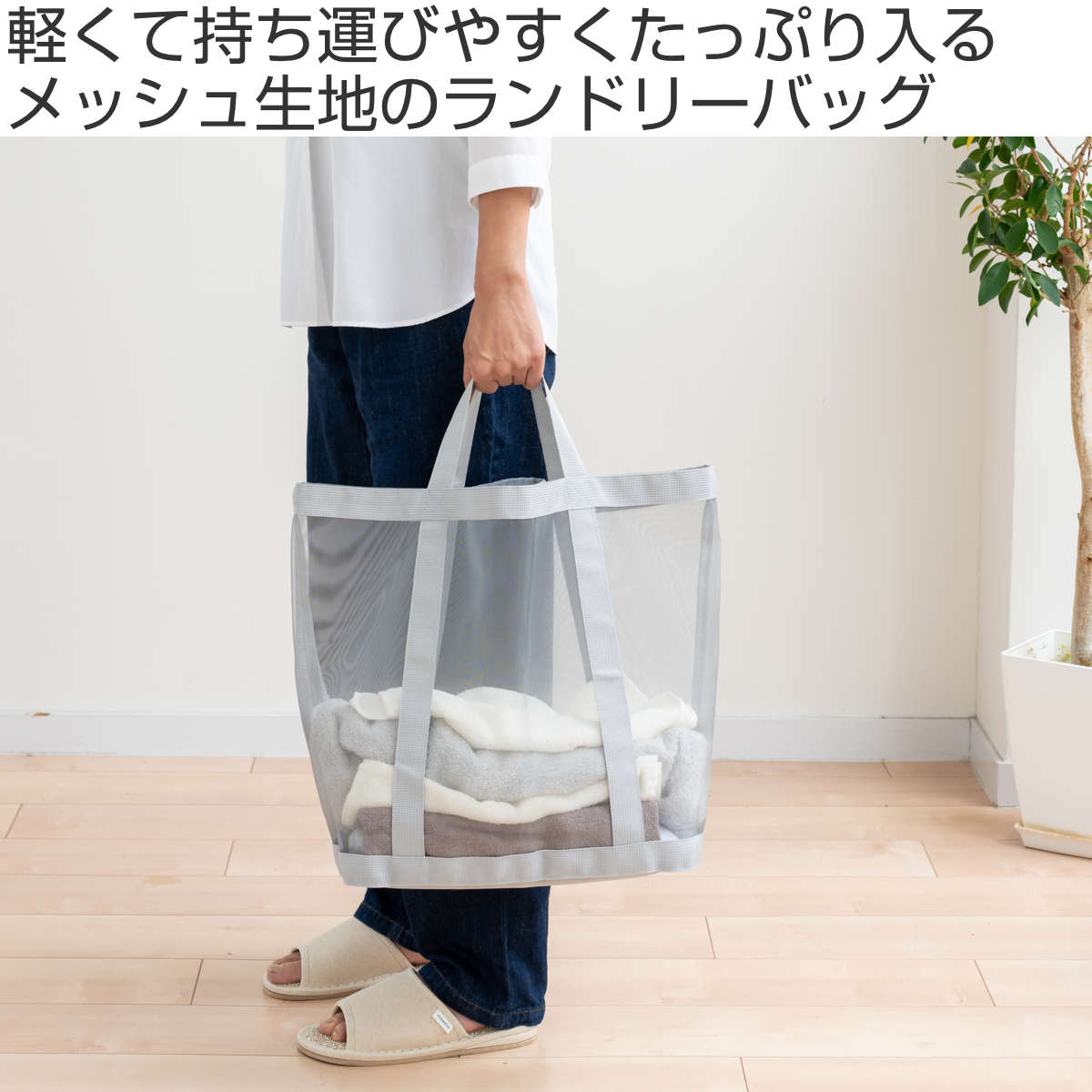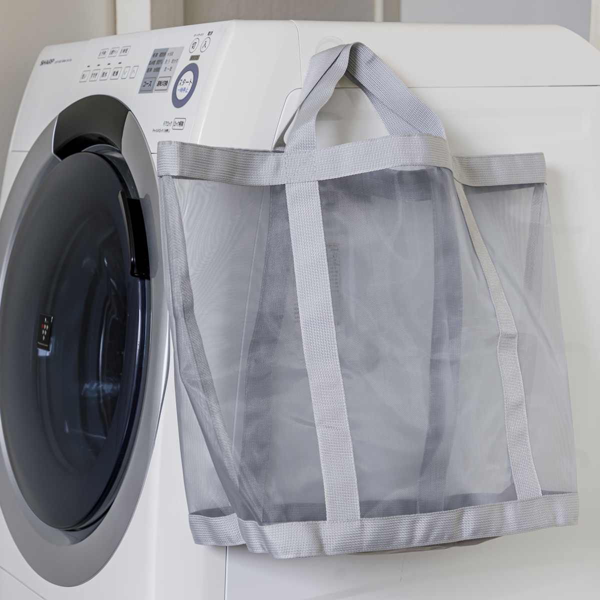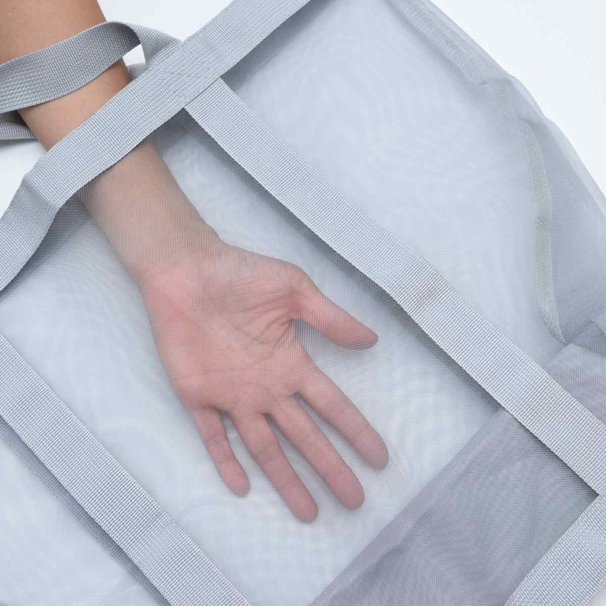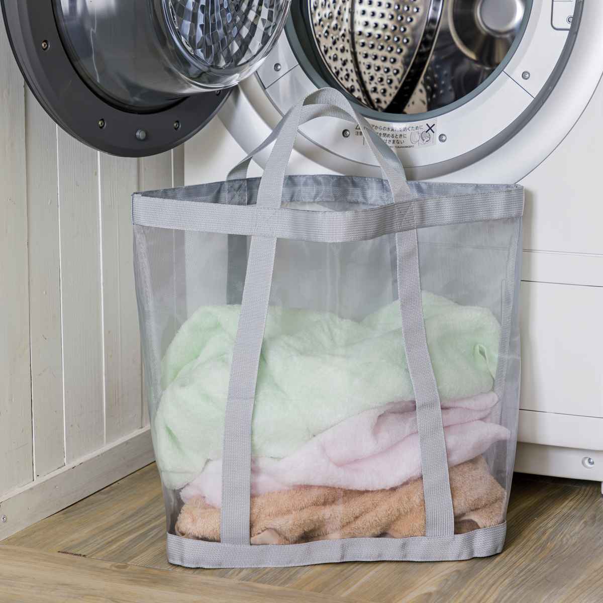 濡れた物を入れてもムレにくく、通気性の良いメッシュ生地を使用しています。中身が程よく透けて見えるので何がどこにあるのか分かりやすく、家事の時短にもなります。