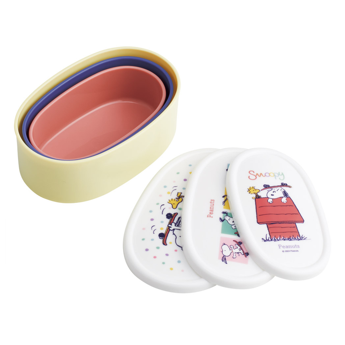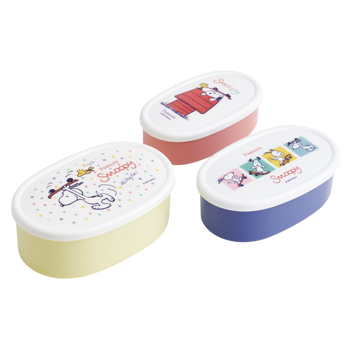 3サイズが1セットになったランチボックスです。抗菌加工が施されているのでお子様も安心です。大サイズが約400ml、中サイズが約280ml、小サイズが約180mlです。ご飯、おかず、デザートなどメニューによって容器を使い分けることができます。お弁当箱としてだけではなく、保存容器としてもお使いいただけます。