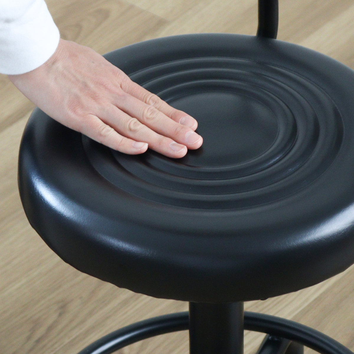しっかりとした厚みがあり、丈夫なモールドウレタンとポリウレタンレザーの座面です。座面クッションを凸凹にすることで型崩れしにくく、座った時の滑り止めの役割りもあります。