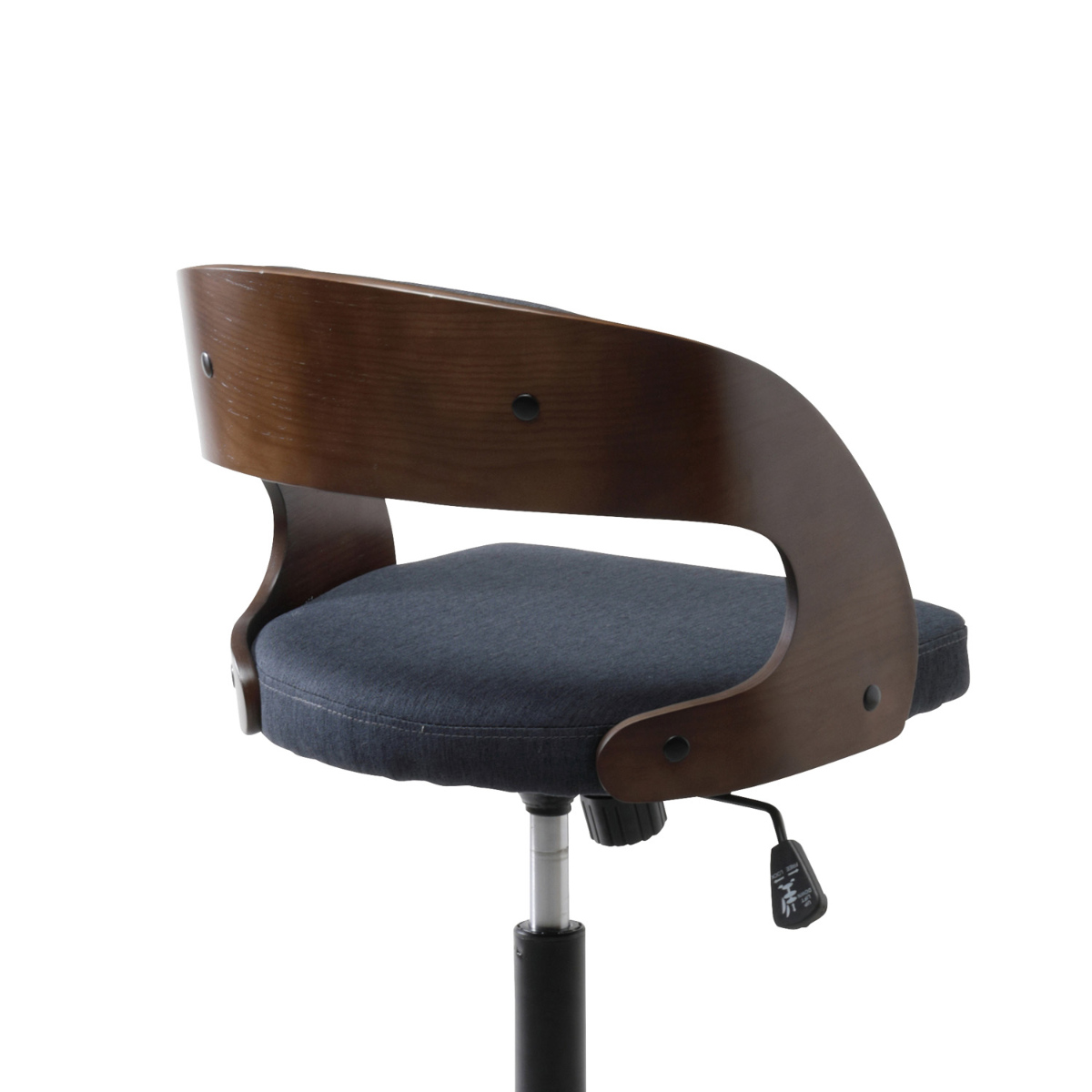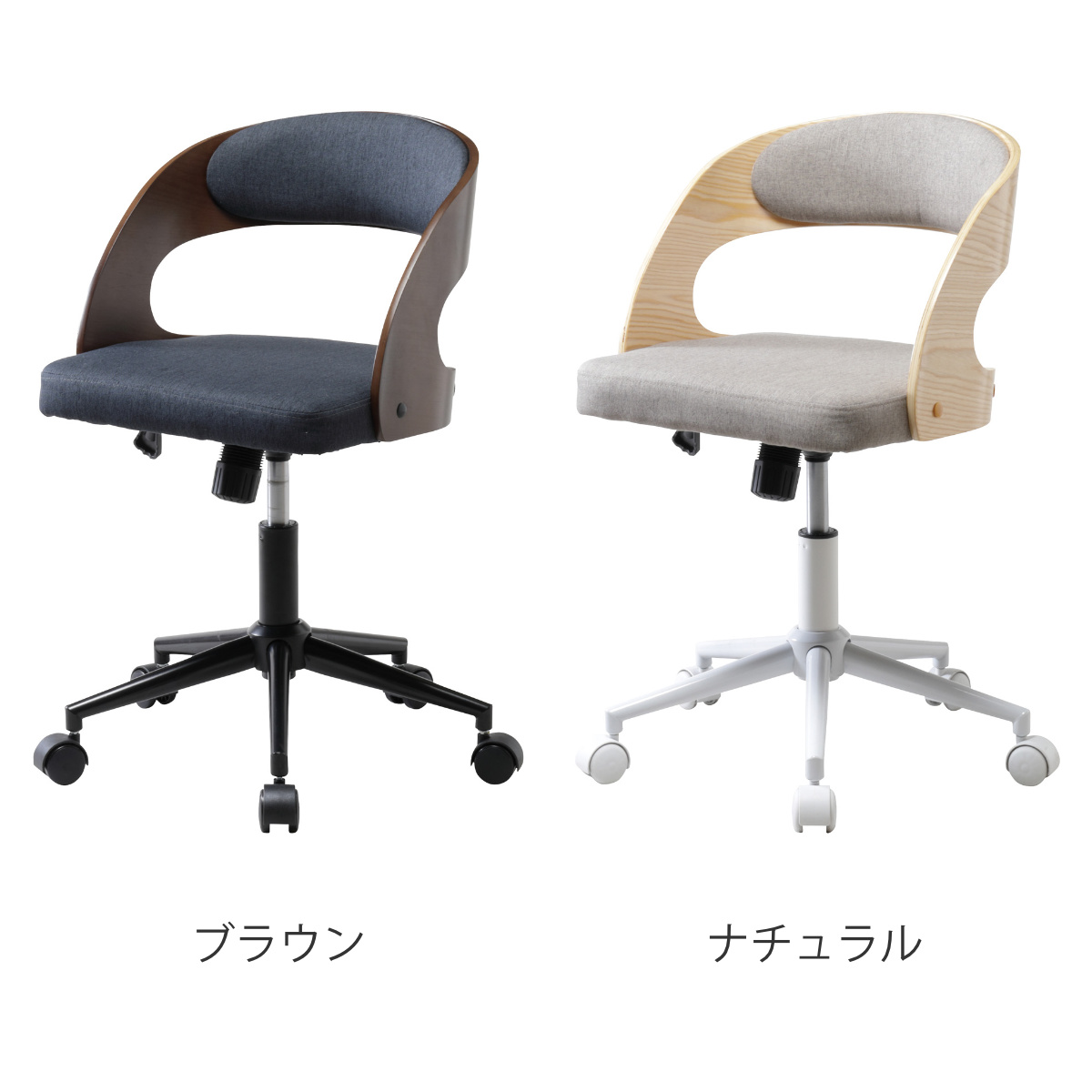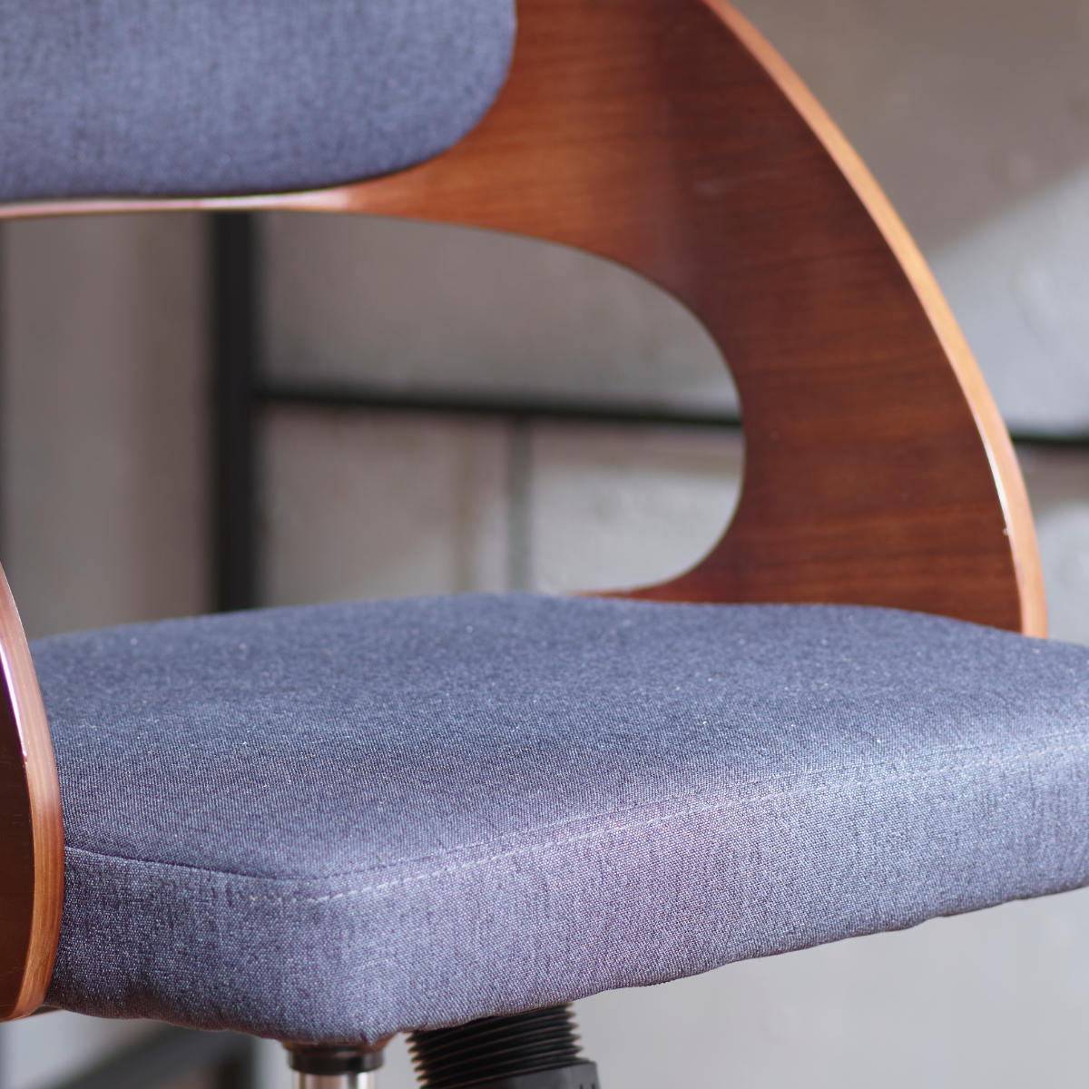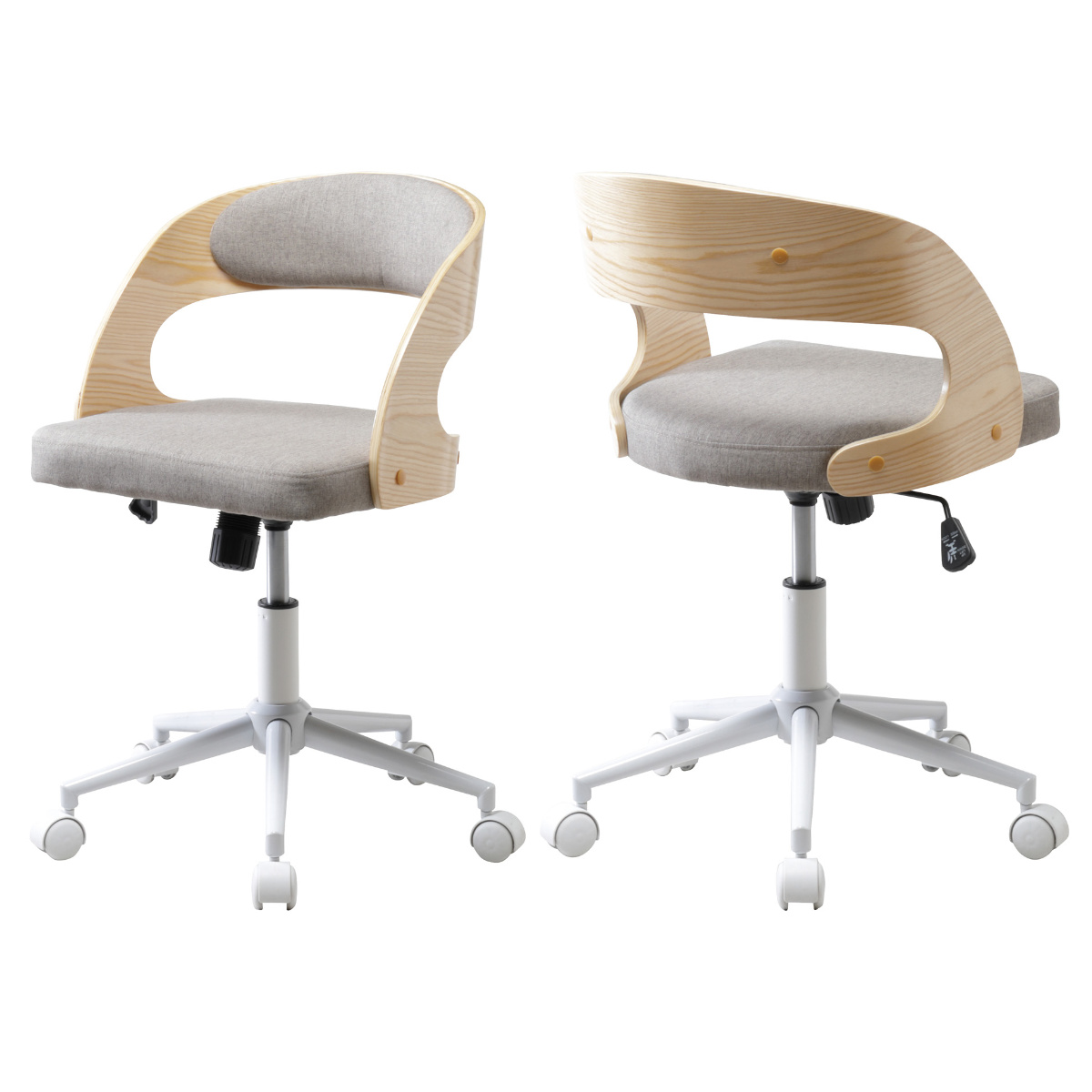 自宅でのワークシーンに馴染んでくれる昇降式のデスクチェアです。個性あるフォルムの合板の背にカジュアルなファブリックを使用しています。シンプルなデザインのため、どのようなシーンにも合わせやすいです。