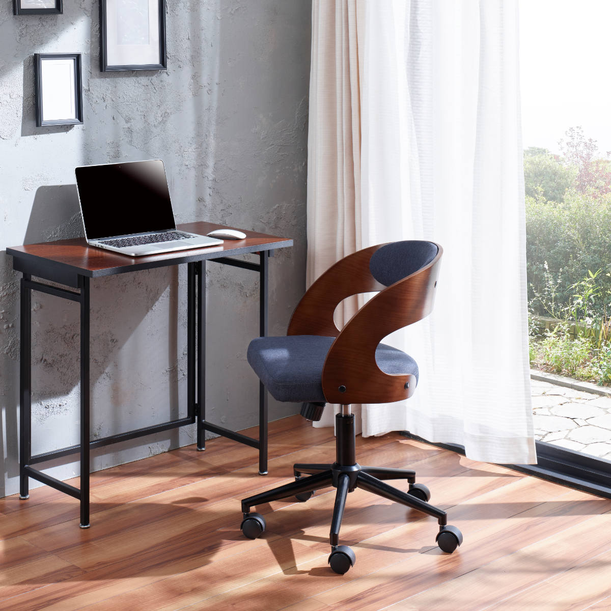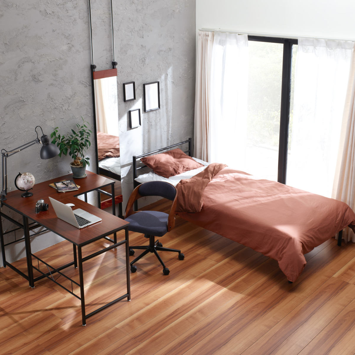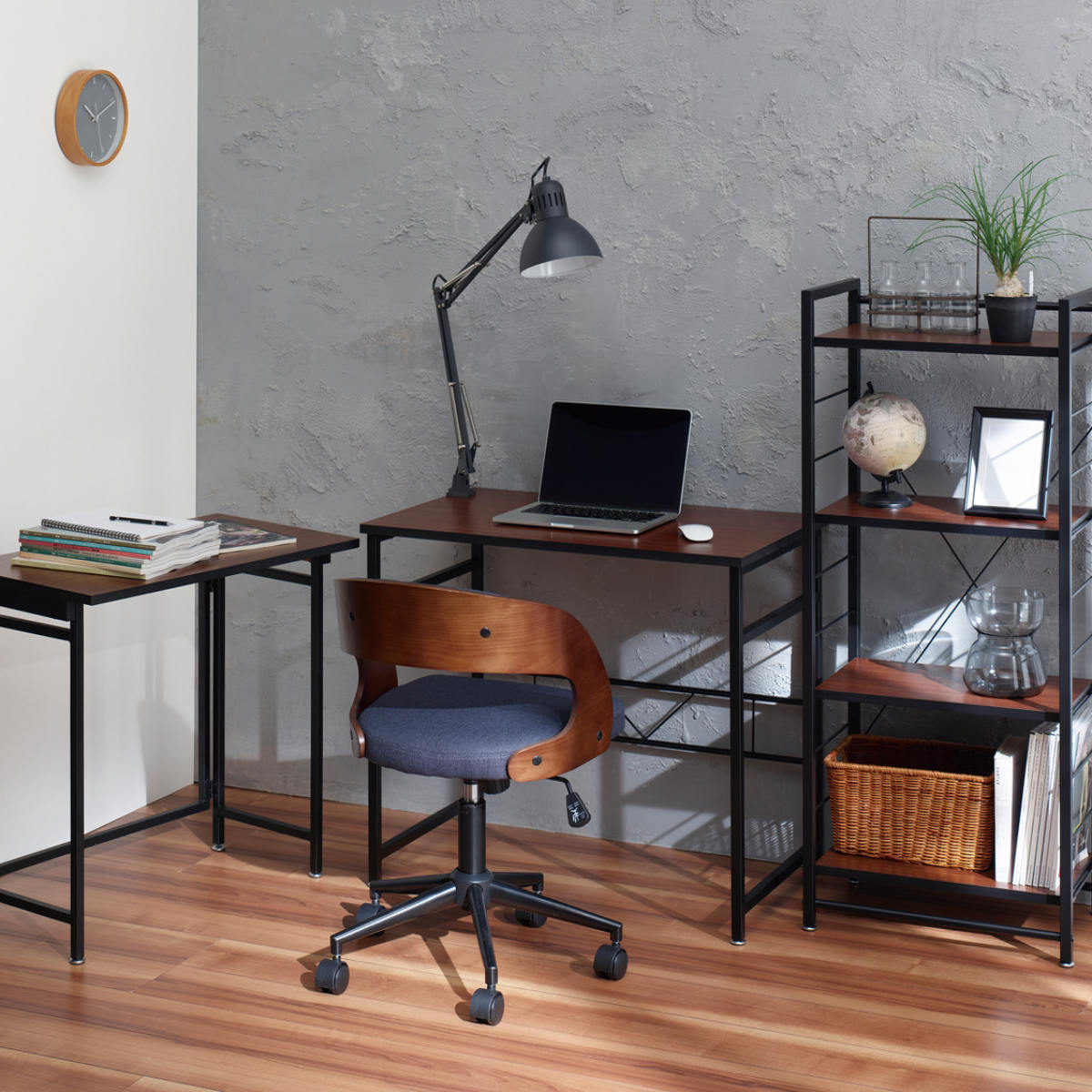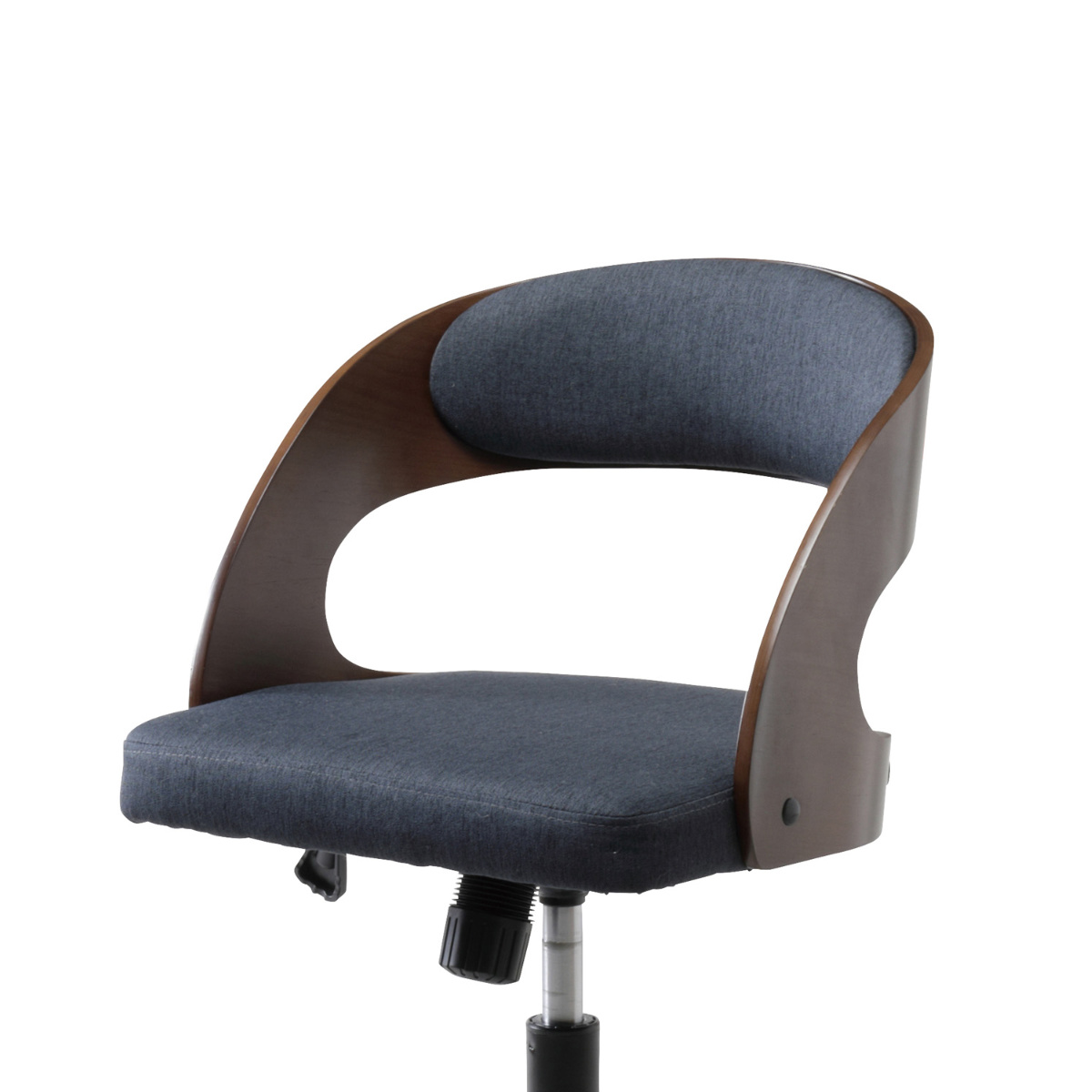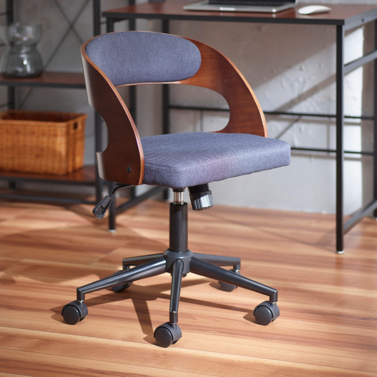 自宅でのワークシーンに馴染んでくれる昇降式のデスクチェアです。個性あるフォルムの合板の背にカジュアルなファブリックを使用しています。シンプルなデザインのため、どのようなシーンにも合わせやすいです。