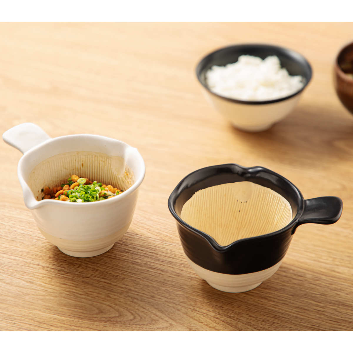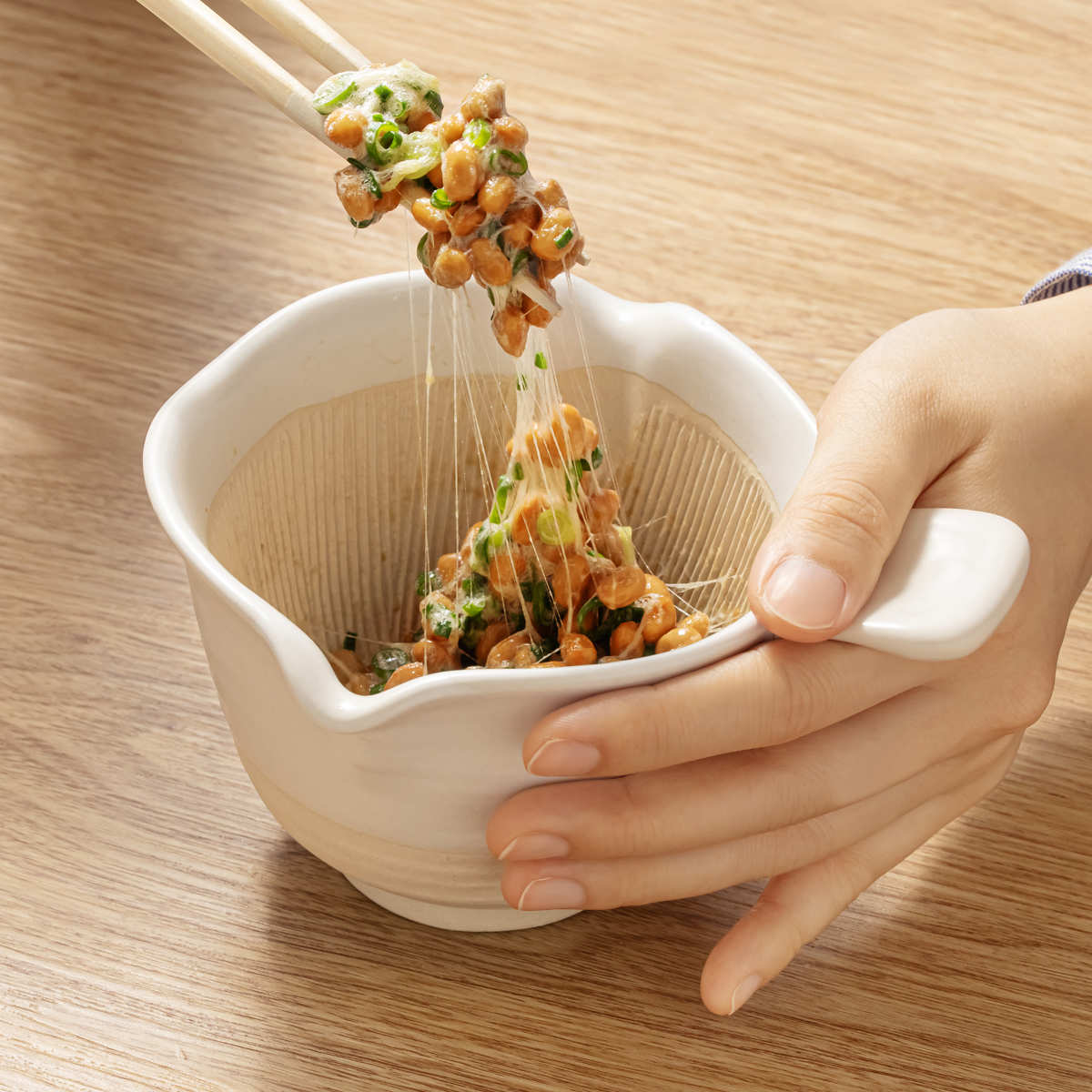 内側の細かい溝が納豆を混ぜるときに空気を含ませて、ふわっと粘りのある納豆が出来上がります。忙しい朝食の時間でも短時間であっという間にふわふわに。納豆専用の小鉢を使うことでいつもより美味しい納豆に出会えます。
