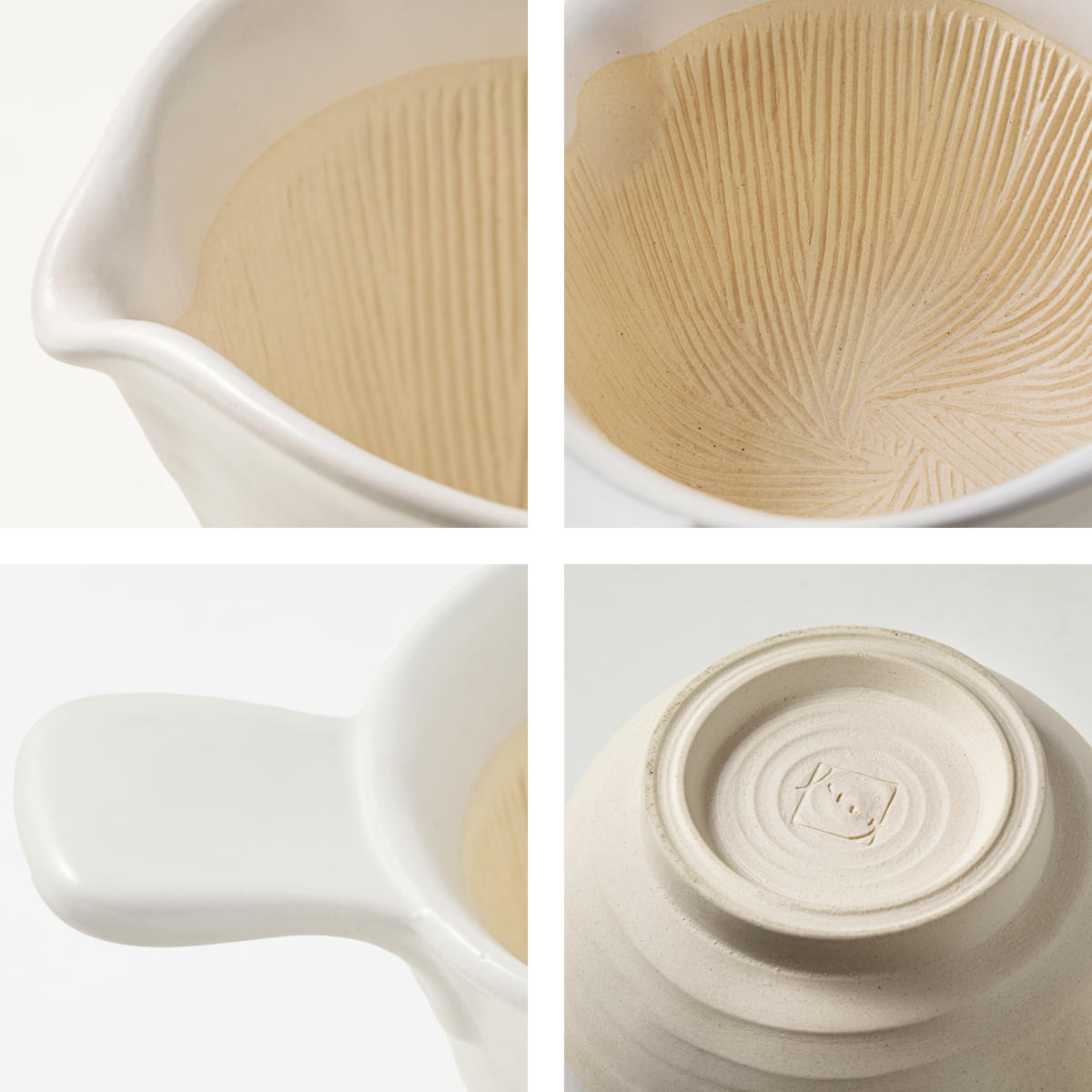 | 注意事項 | ※すり棒のご使用はお控えください。製品が欠けたり、釉薬が剥がれる場合があります。 ※原材料の土や釉薬の特性により、大きさ・形状・色・質感・重量に若干の違いが生じます。 |