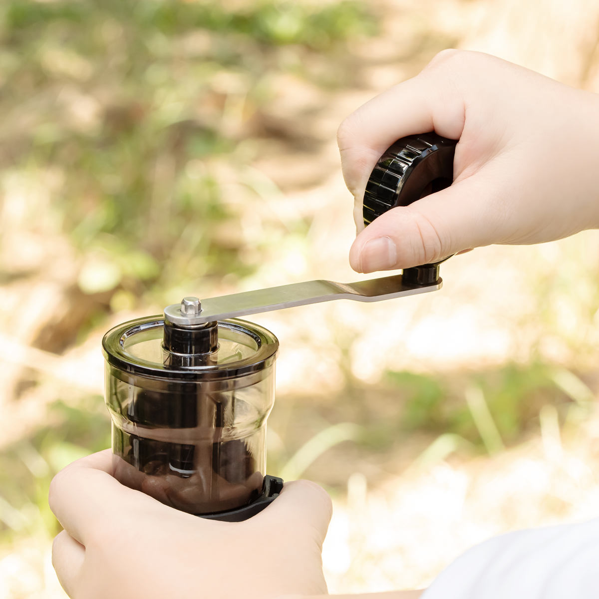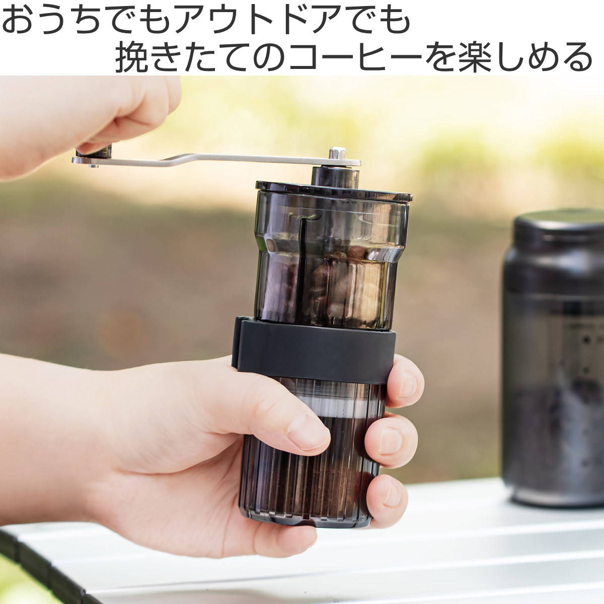 ご自宅以外でも挽きたてのコーヒーを楽しめるハンドコーヒーミルです。自分好みのコーヒーをいつでもどこでも挽きたてで楽しめるアイテムです。中が見えるクリアな本体で挽けた量が一目で分かり便利です。