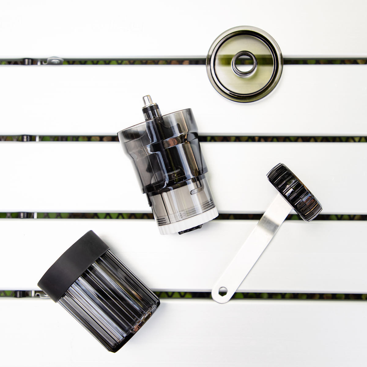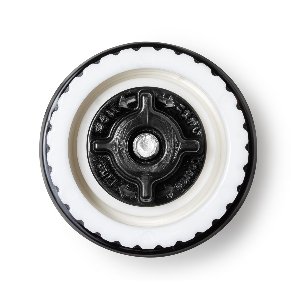 | 材質 | 本体:ポリカーボネート、ポリアセタール・ステンレス・鉄(三価ブラック)・PTFE フタ・容器:ポリカーボネート ハンドル:ポリカーボネート、ステンレス、鉄(三価クロメート) 刃部:セラミック磁器 滑り止めグリップ:シリコンゴム |