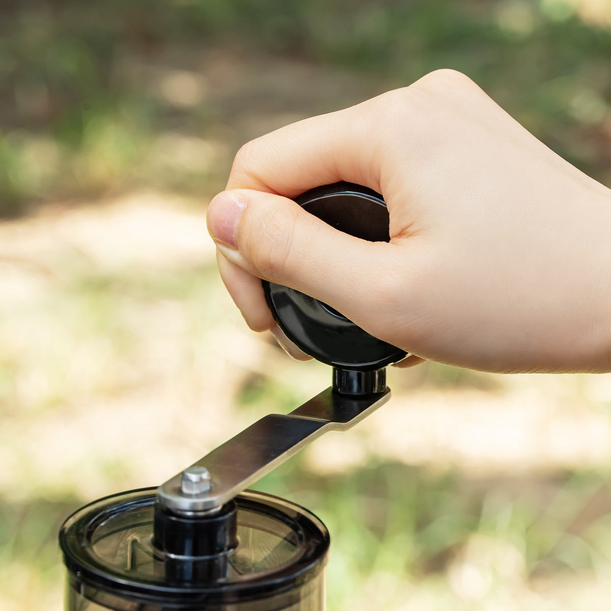 ネジを回すだけでドリップ方式やお好みのコーヒーに合わせて、粗挽きから細挽きまで無段階でお好みの粗さに調節できます。