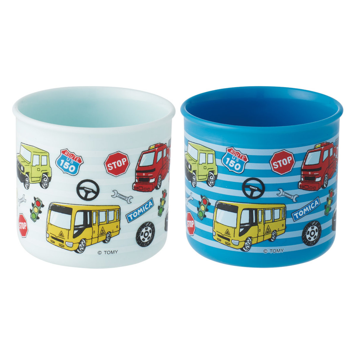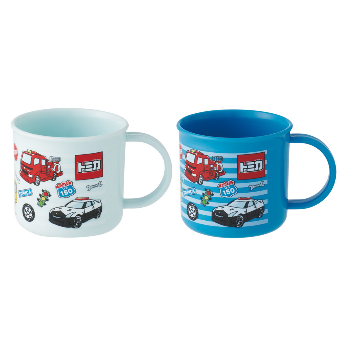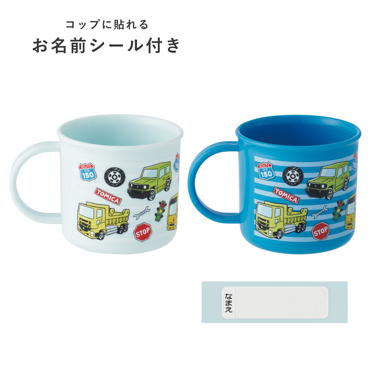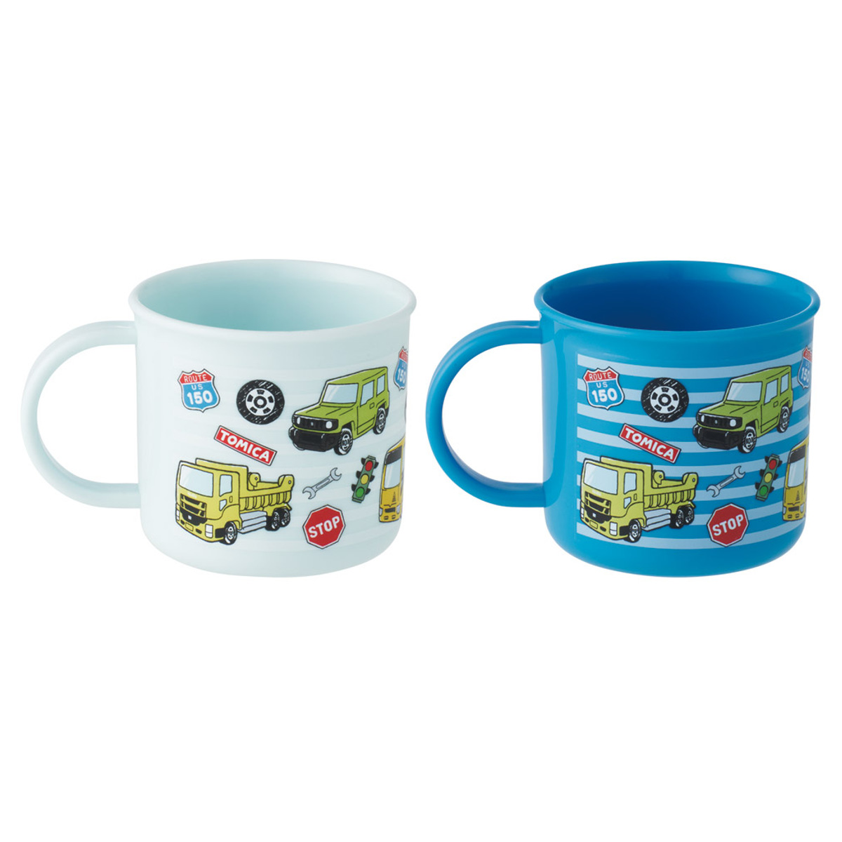 ●トミカの色違い2個セットの取っ手付きコップです。