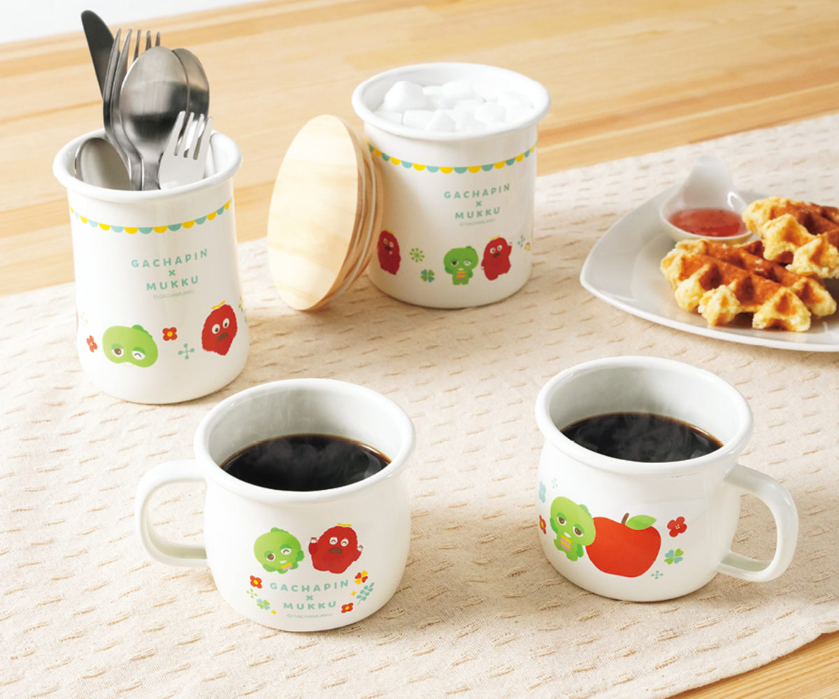 草花や瑞々しいフルーツなどナチュラルなモチーフを取り入れたとってもキュートなキッチンウェアシリーズ。日本でひとつひとつ、絵柄を丁寧に手で貼り仕上げています。ホーローの表面を可愛らしい「ガチャピンとムック」が彩ります。