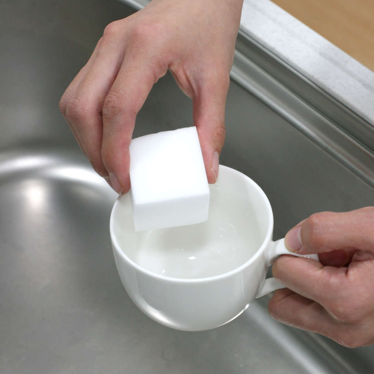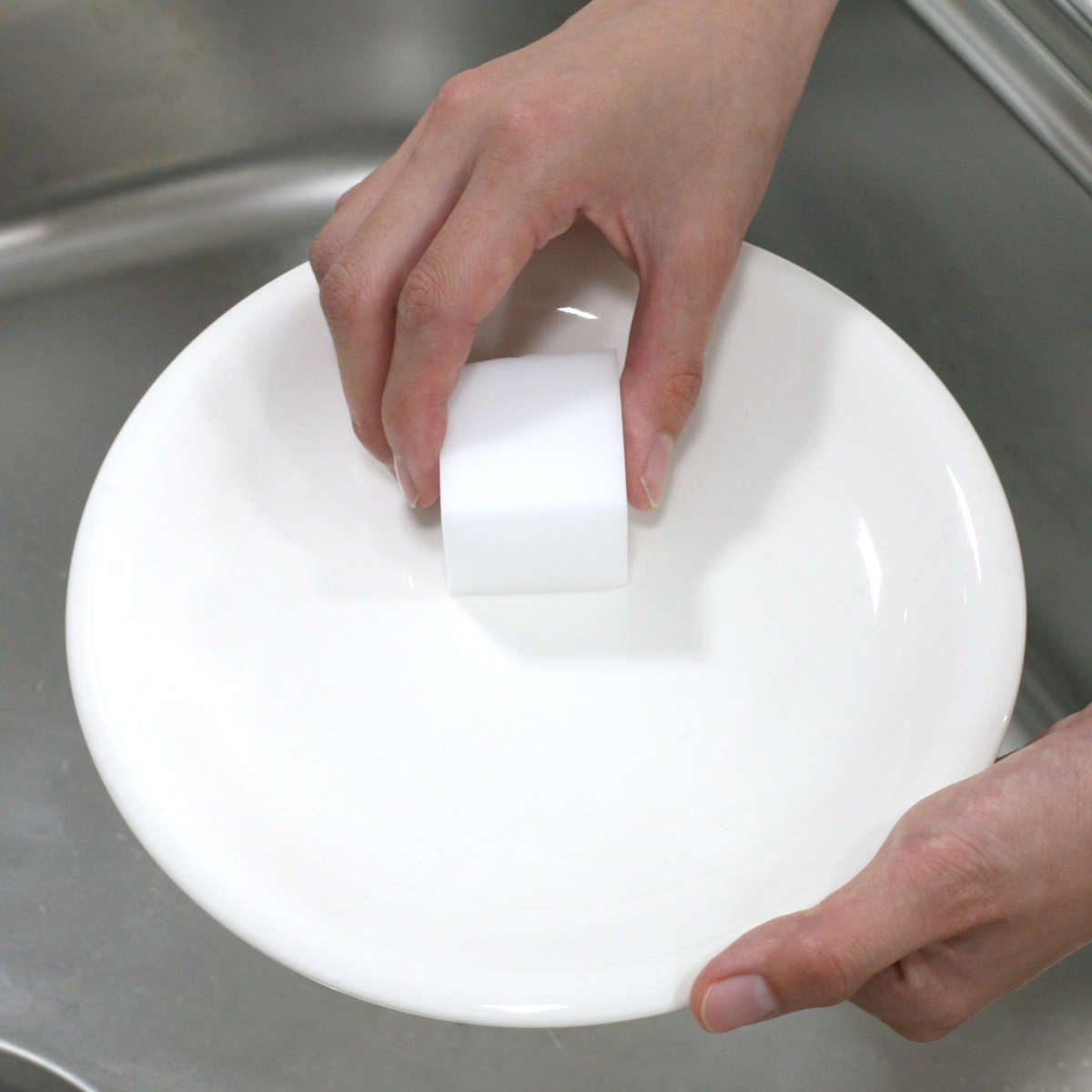洗剤不要、水だけで汚れを落とすメラミンスポンジ