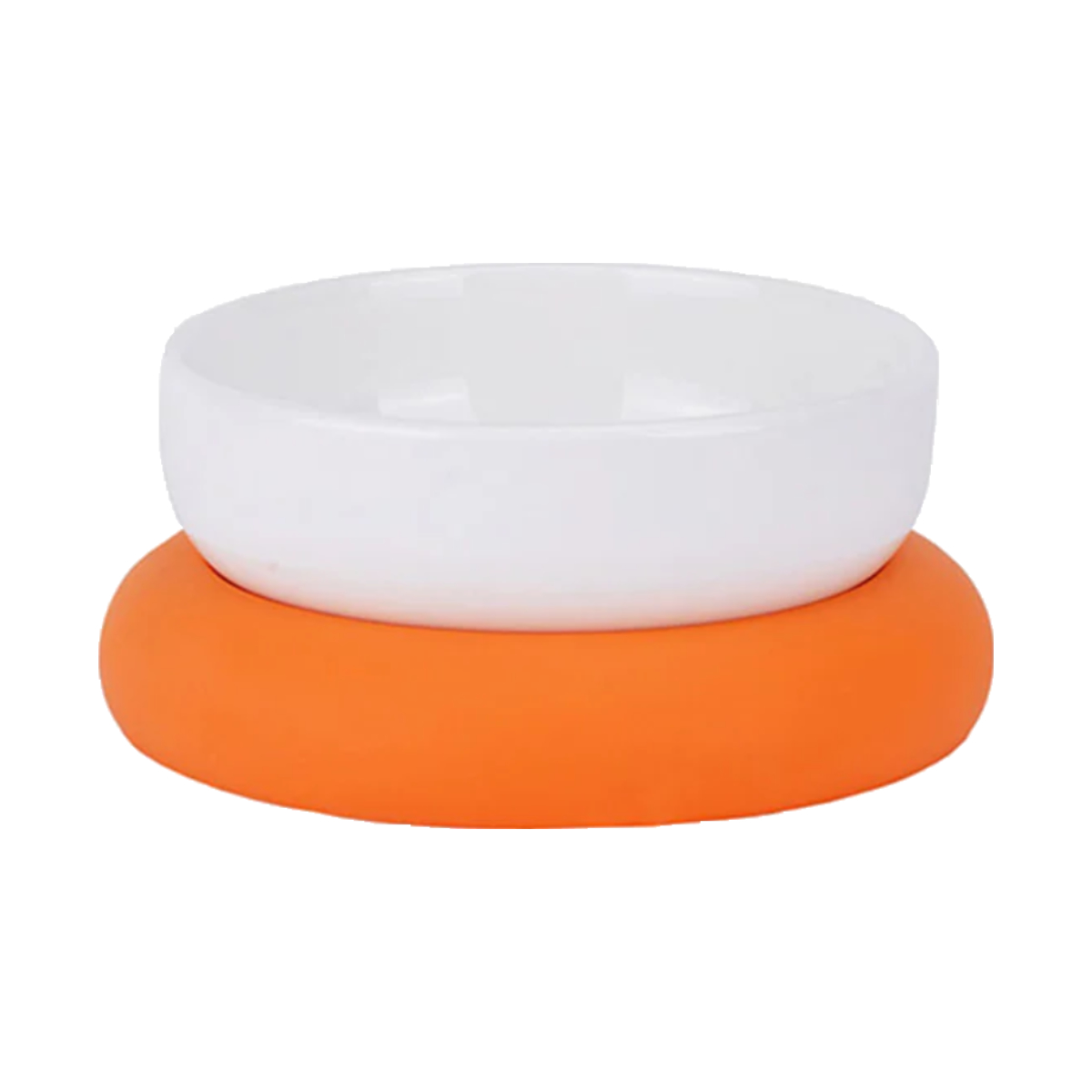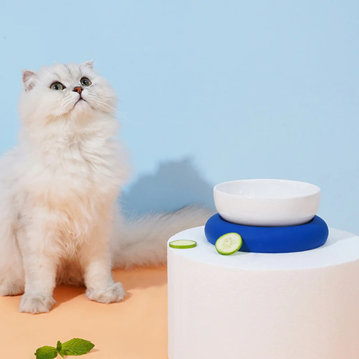 滑り止めのシリコンベースにより、ボウルが転倒しにくく、食事中も安定感があります。シリコンベースがお椀を固定するので、ねこちゃんの食べやすい角度に調整できます。