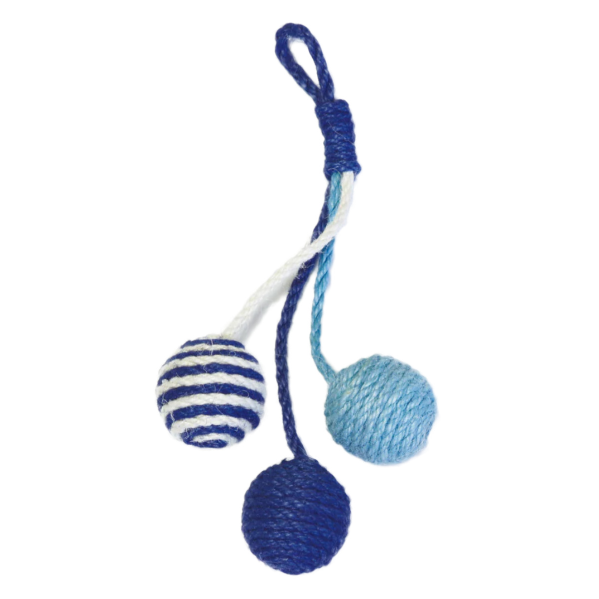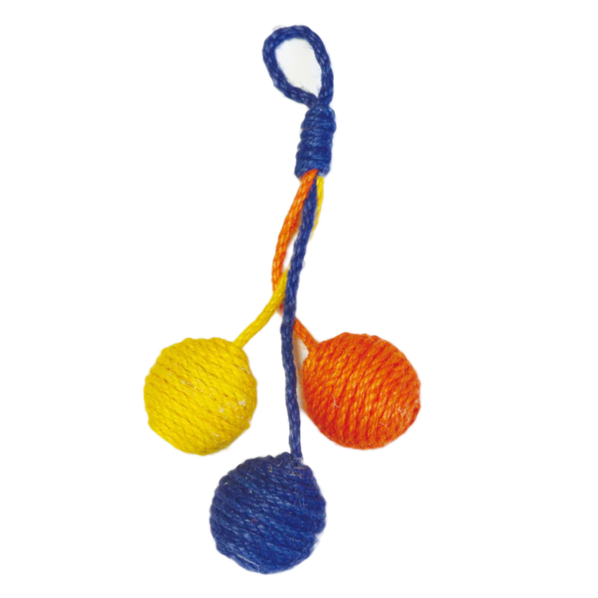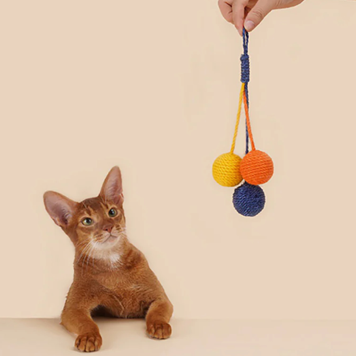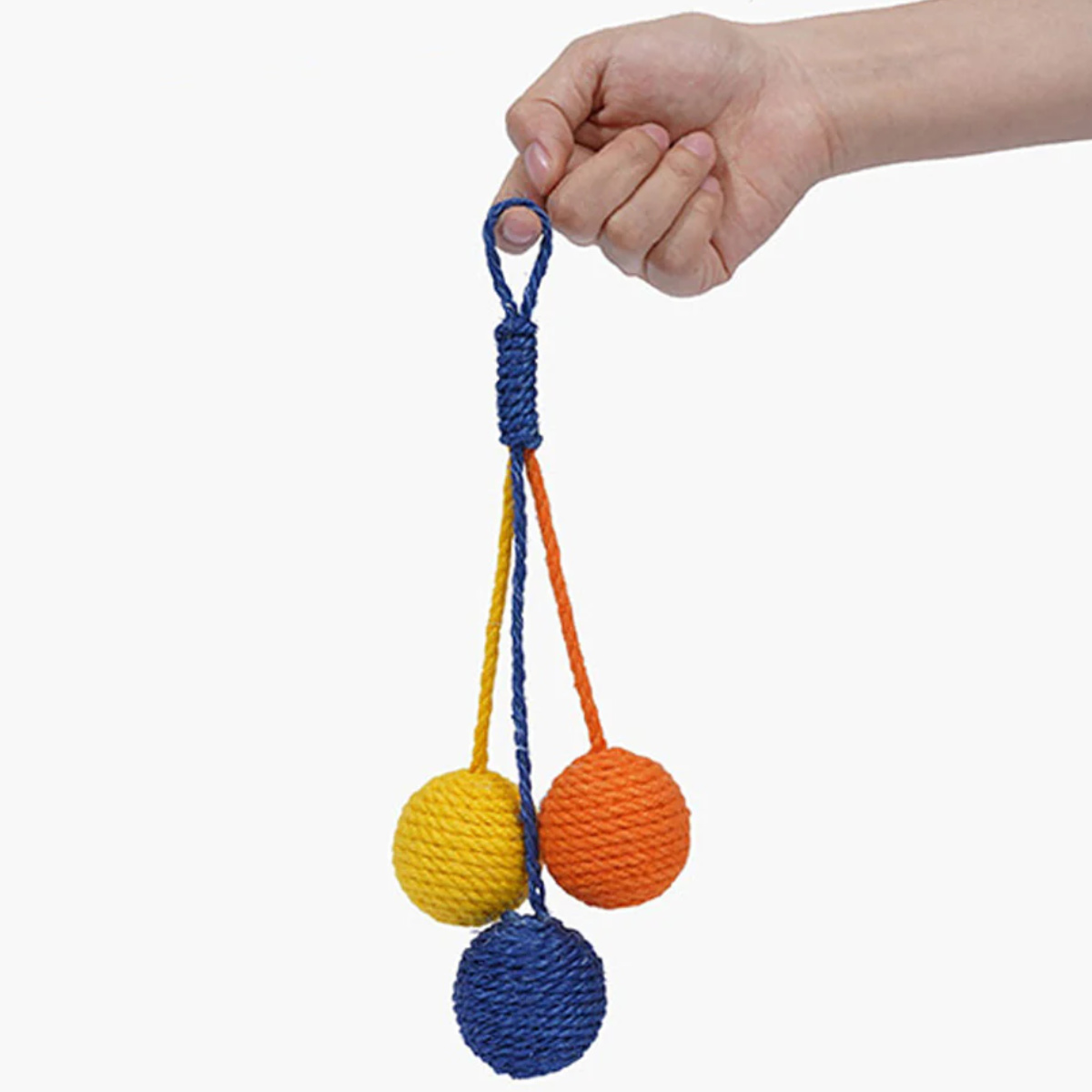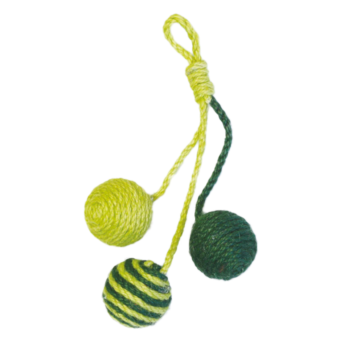 壁やドアノブに掛けられる麻ロープのペット用おもちゃです。 シンプルながらキャッチーな見た目で、お部屋のインテリアも明るくなります。 ドアノブで揺れるボールに猫ちゃんは興味津々です。