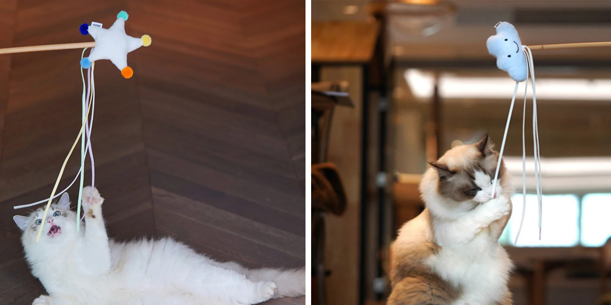 星と航空宇宙からインスピレーションを得た、星空がモチーフになっている猫じゃらしです。月、雲、星どれも愛嬌たっぷりで飾っているだけでもかわいいインテリアになります♪かわいいマスコットにカラフルなリボンがなびき、見ているだけで楽しくなる猫じゃらしは猫ちゃんも大喜び間違いなしです。