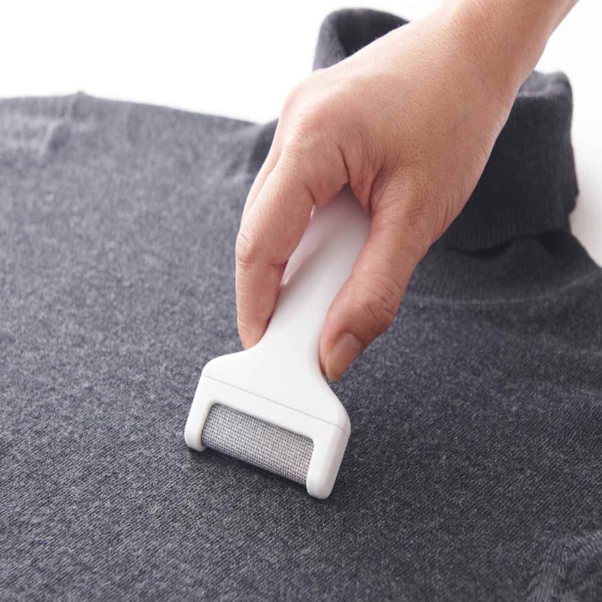 毛玉取りを繊維に沿って軽くこするように動かすだけ、と使用方法は簡単です。手にフィットする形状で楽々お手入れしていただけます。