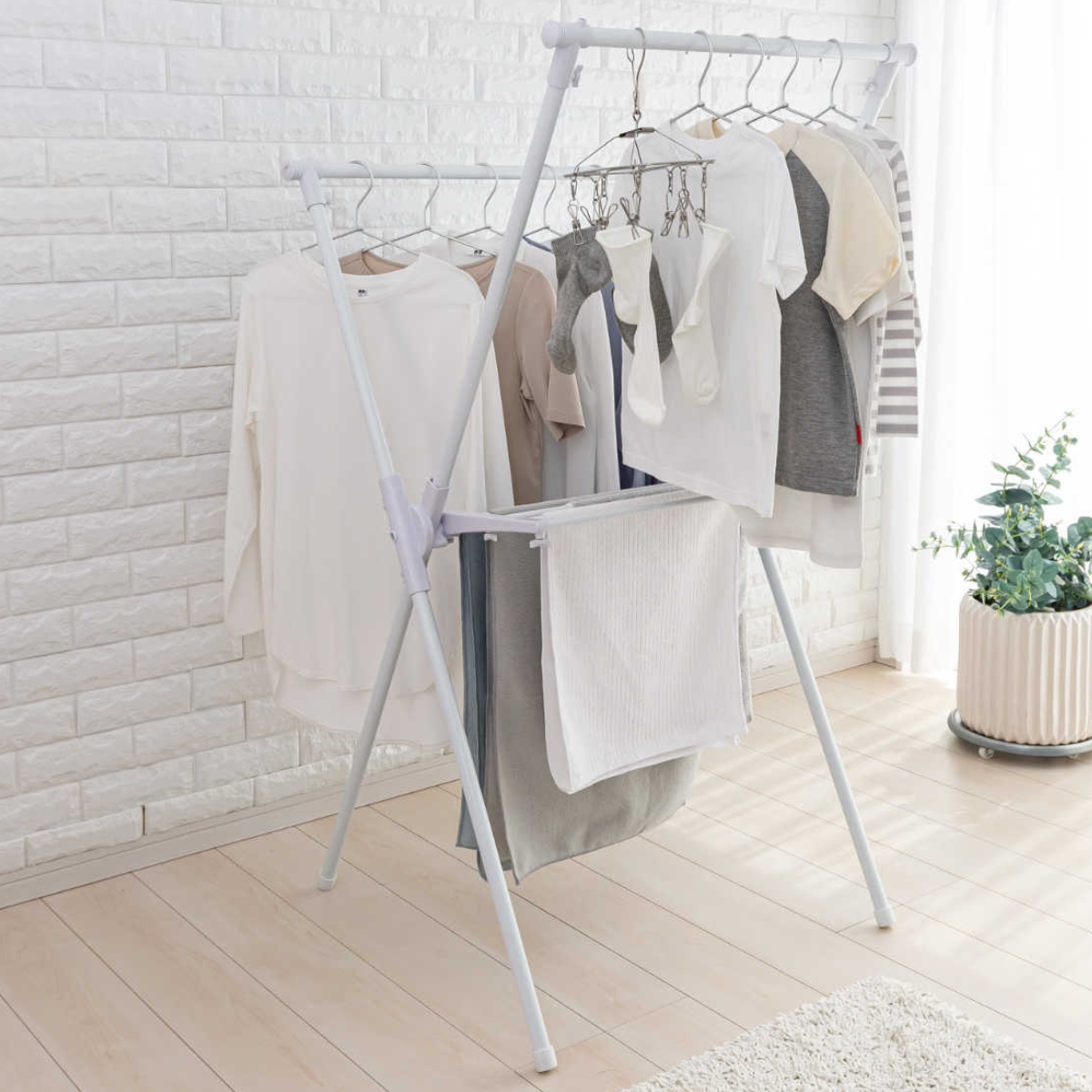 効率良く干せるX型物干しスタンド
