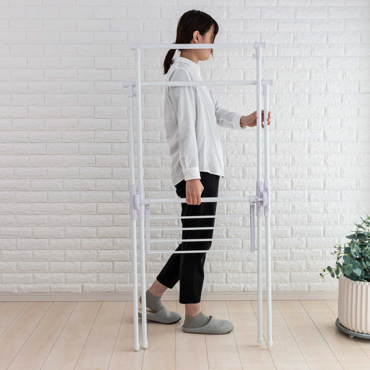 ●通気性の良い段違い設計なので、省スペースで効率良く干せます。