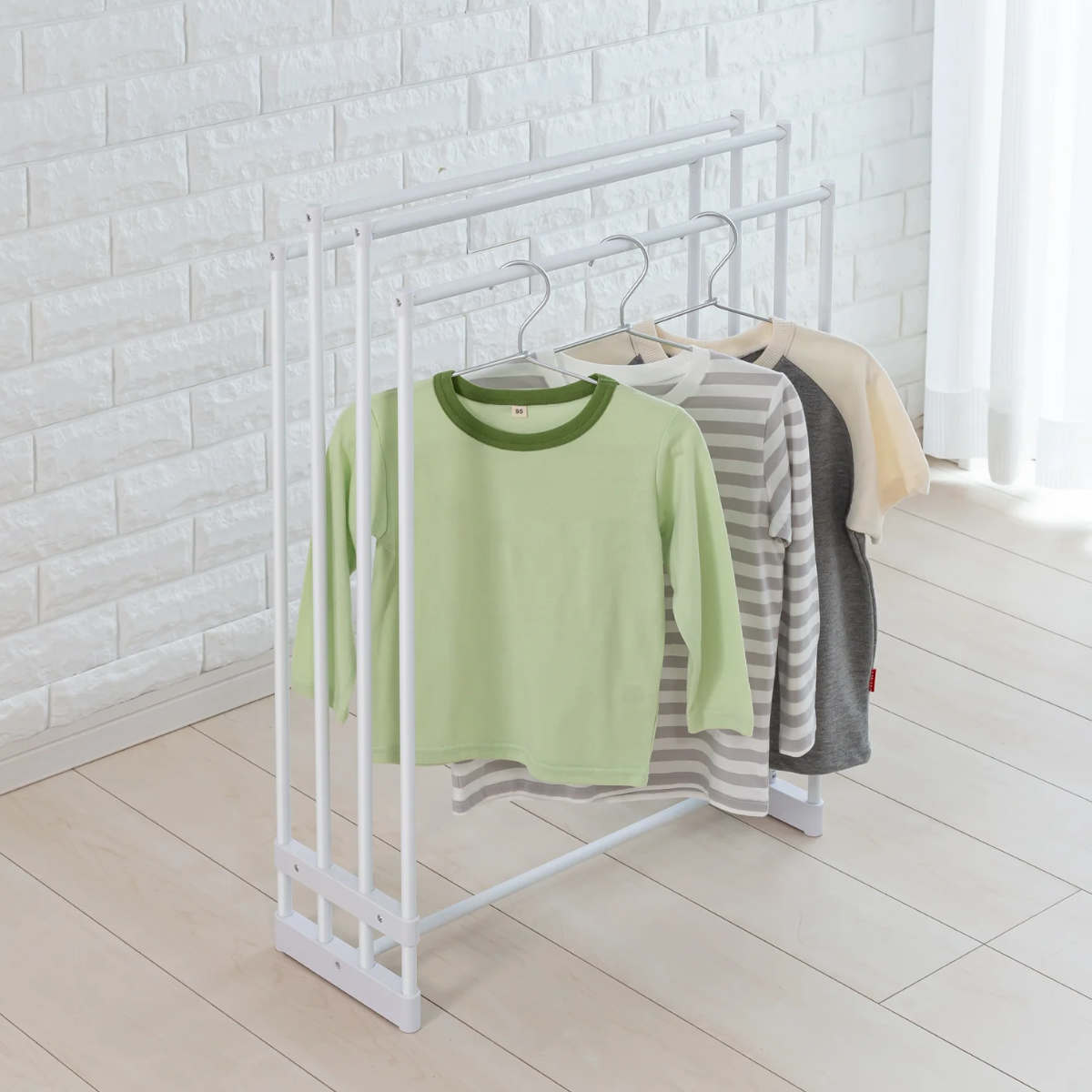 タオル干しだけでなくハンガーもかけられ、物干しとしても使えます。