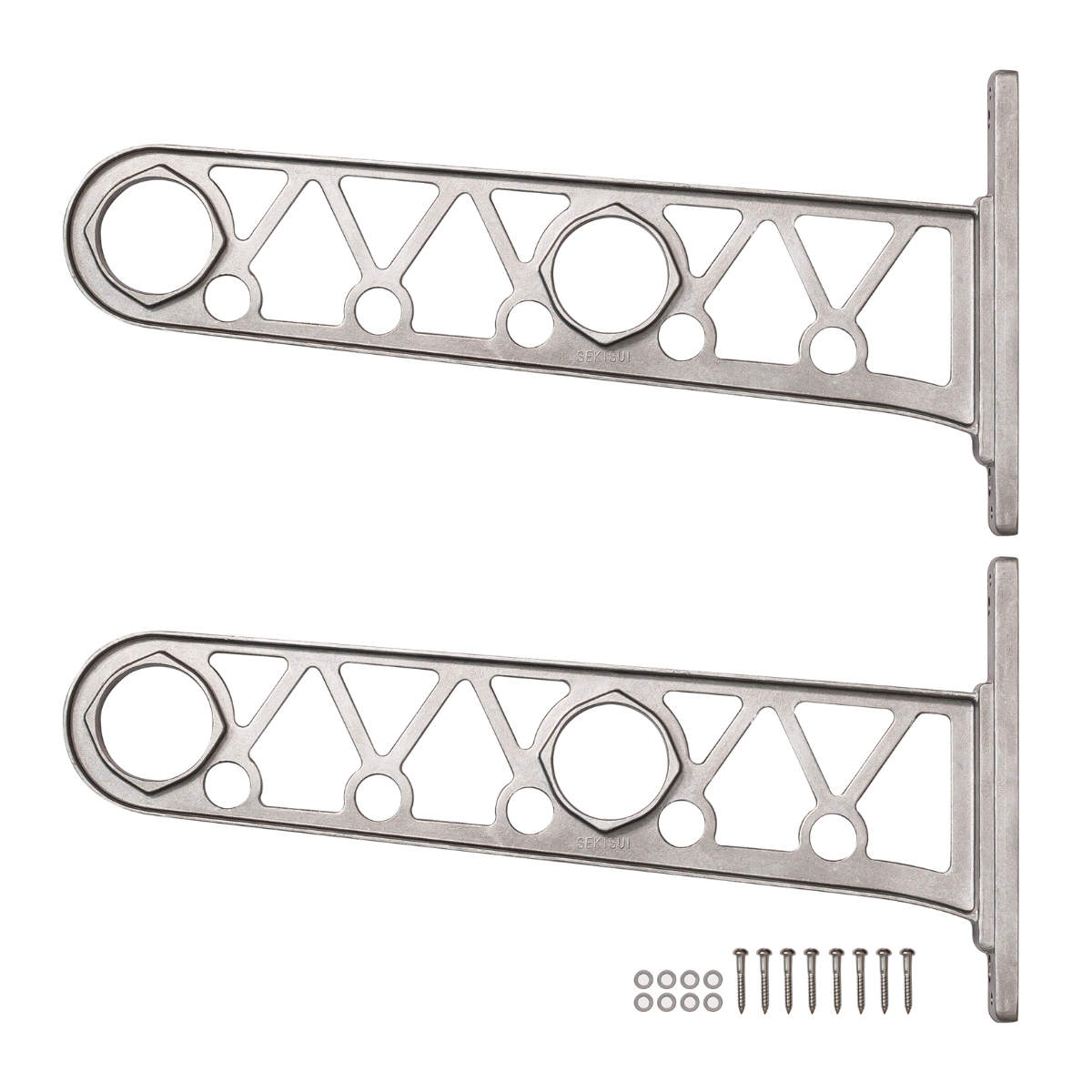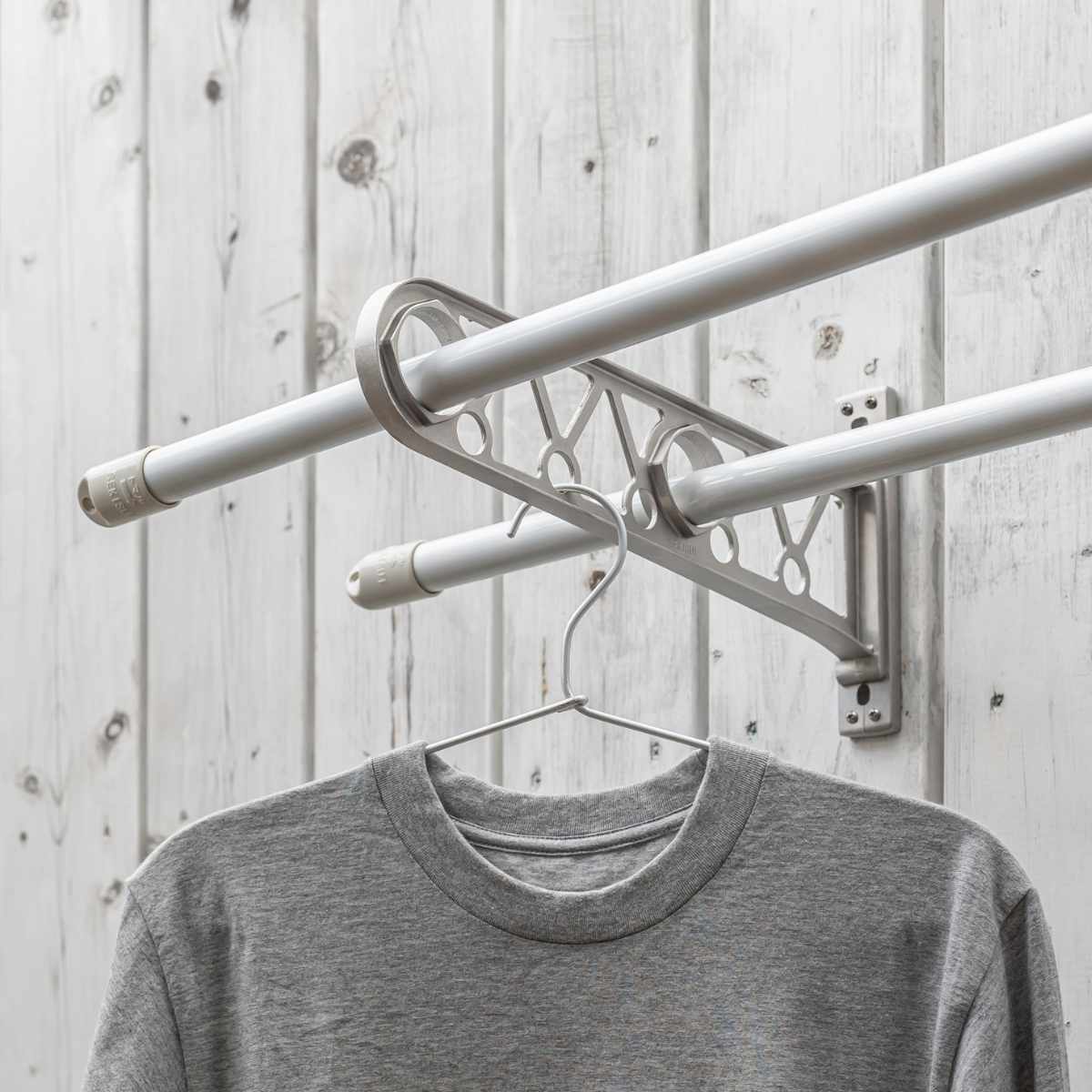 のき下で簡単に竿かけができる物干しです。窓枠などの木質部に木ネジで簡単に取付けできます。耐久性に優れたアルミダイカスト性なので屋外に設置するのに安心です。
