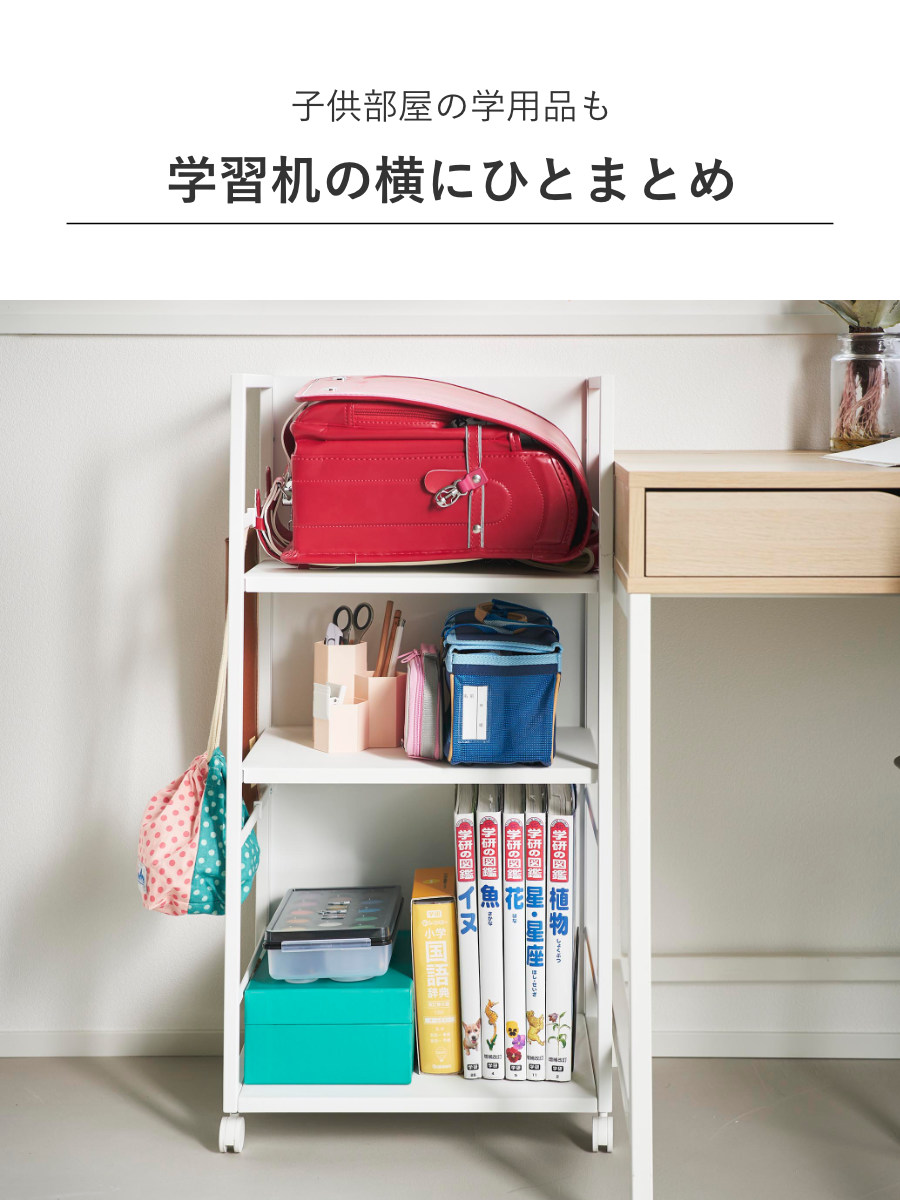 ランドセルと学習セットなどをひとまとめに収納できます。お子様が自分で準備や片付けをするのに役立ち、リビング学習をするお子様にもおすすめです。