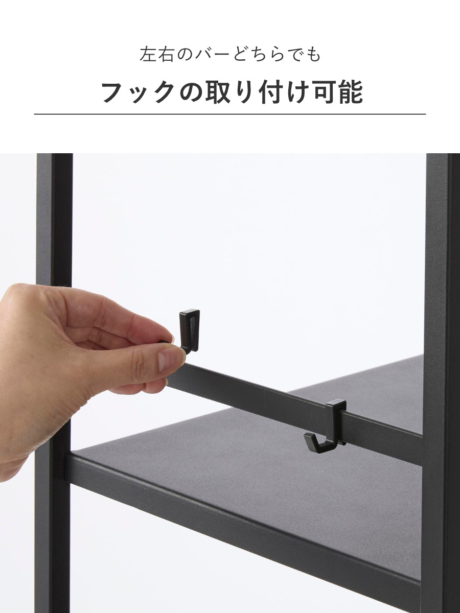 | 材質 | 本体:スチール(粉体塗装) キャスター:ナイロン 付属品:フック×4、スパナ |
