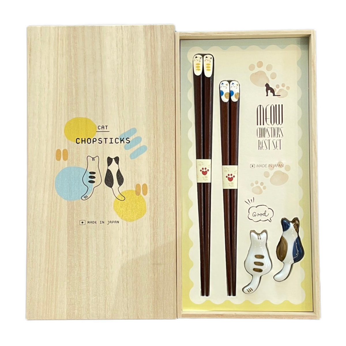 ●23cmのお箸と20.5cmのお箸、ネコの形のお箸置きが2つ入っています。