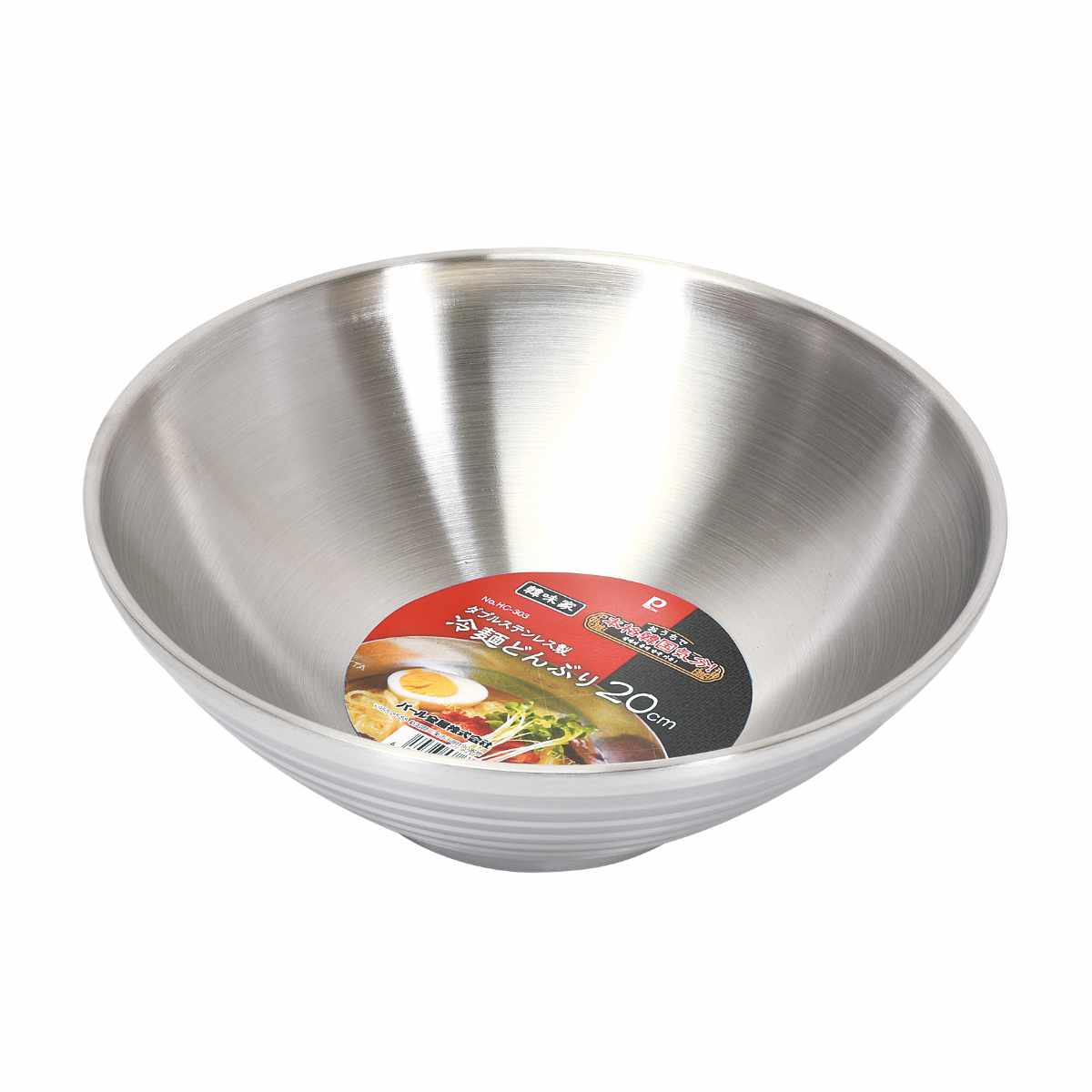 冷麺はもちろん、2~3人で取り分けるサラダや具沢山の丼などの盛り付けにちょうど良いサイズ感です。衝撃に強く落としても割れにくいステンレス製なので、におい移りや色移りがしにくく、油汚れも落ちやすいです。ダブルステンレス二重構造なので、熱くなりにくいのも使い易いポイントです。