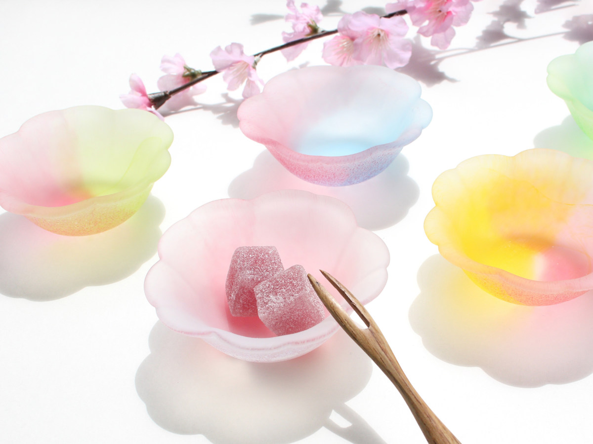 日に照らされ風に揺らめく5種類の桜や葉をイメージしたガラス製の小鉢です。光の当たり方で変わるさまざまな表情が食卓を彩ります。普段使いはもちろん、おもてなしの席でも活躍します。