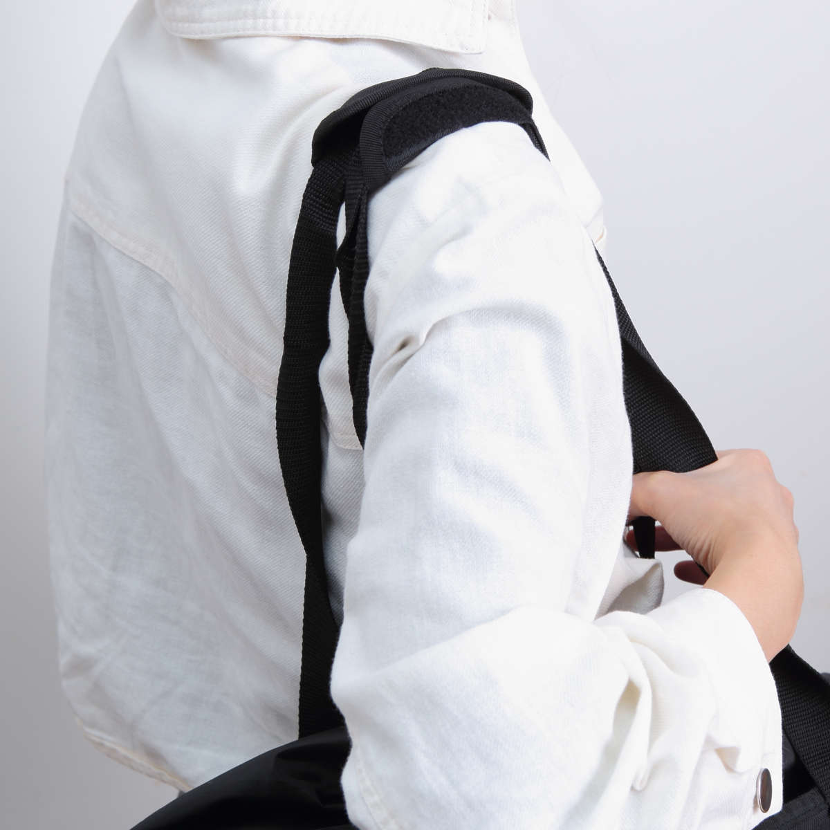 持ち手部分には肩への食い込みを防ぐパッド付きで、長時間の使用でも快適です。