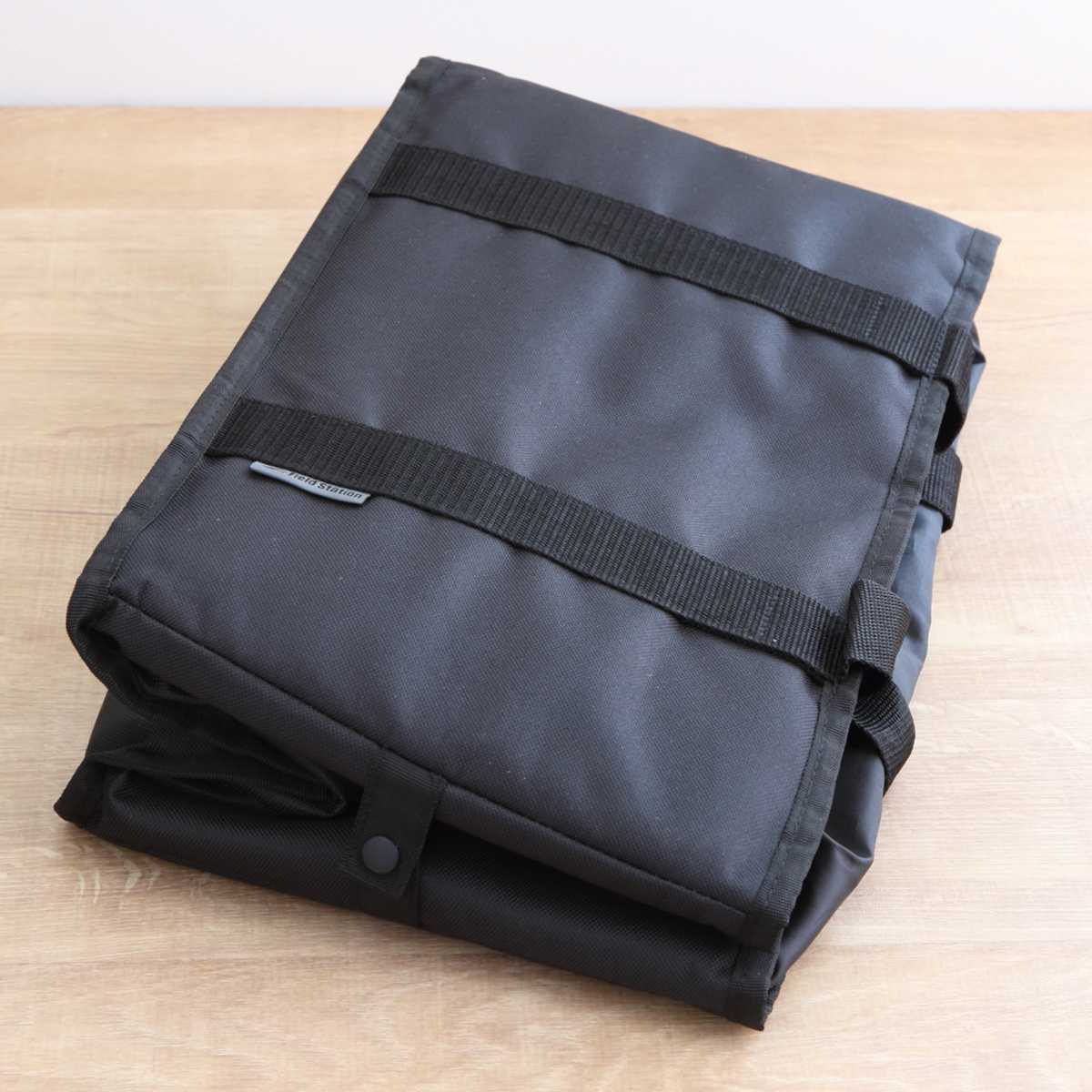 使い終わったら、コンパクトに収納可能です。側面のスナップボタンで広がりを防ぎ、スマートに持ち運べます。バッグの隙間にもスッと収まりやすく、毎日の持ち歩きもラクラクです。