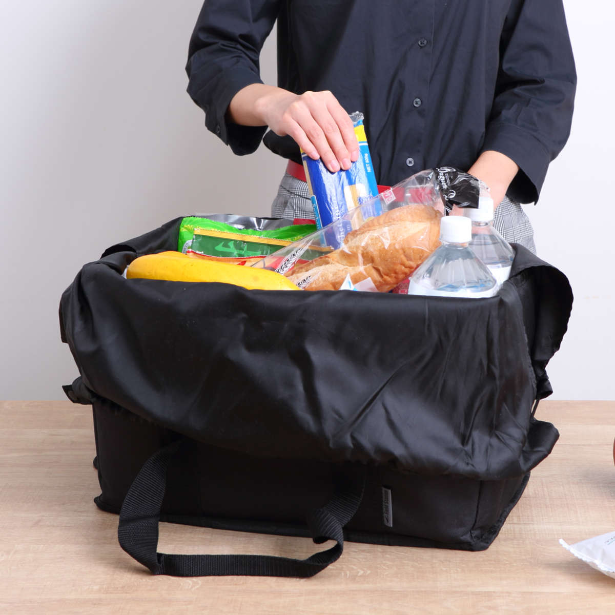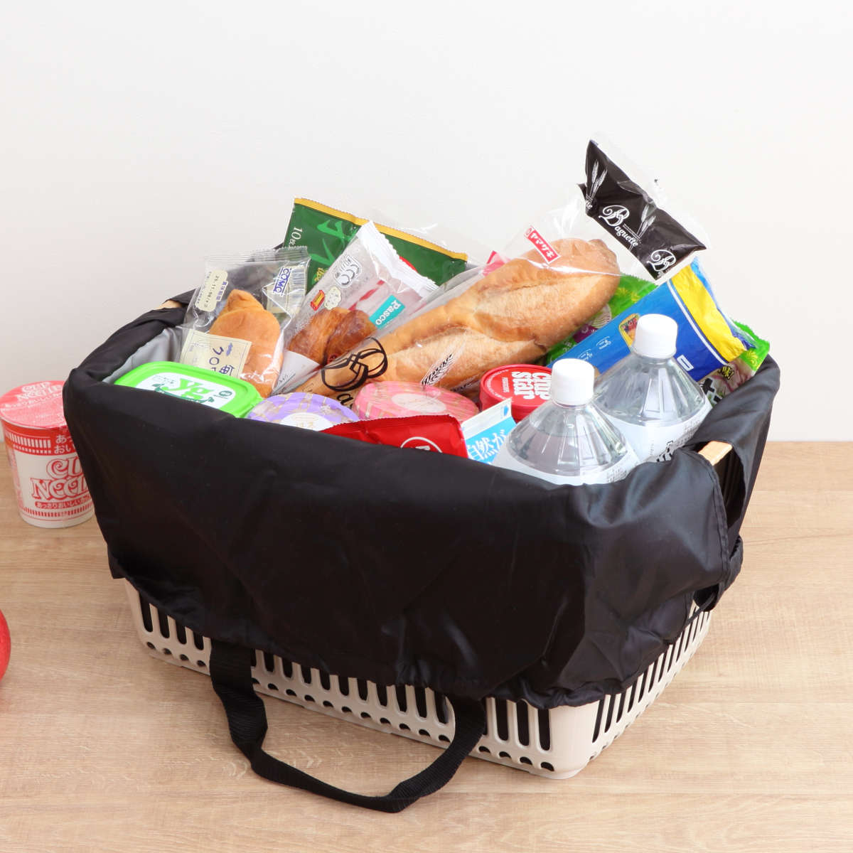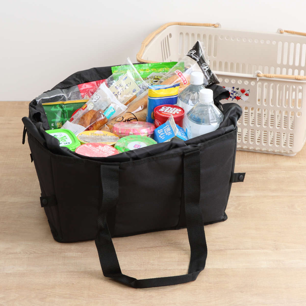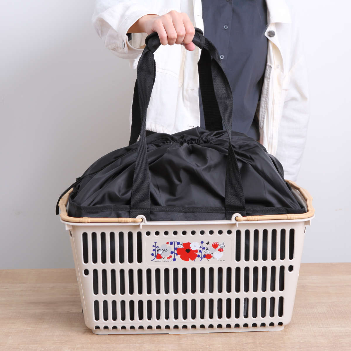 レジかごにぴったりサイズのエコバッグです。お会計の際にかごに設置すれば、レジを通した時点で袋詰め完了。お会計後の袋への詰め替え工程を省いて、そのままサッと持ち帰れます。