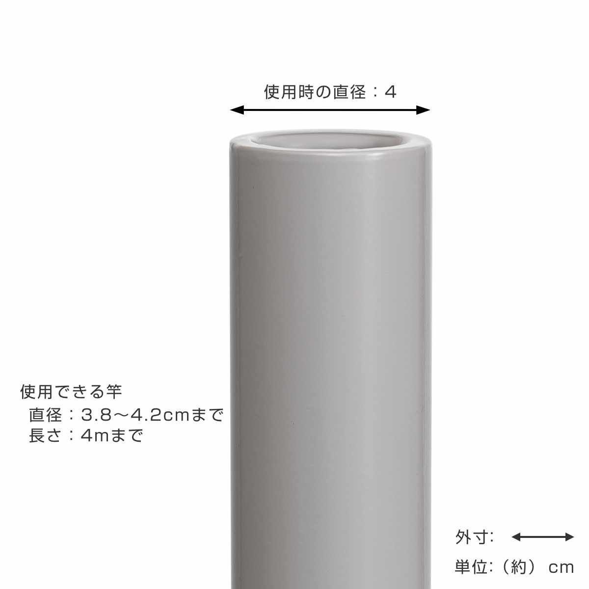 | 備考 | 【対応サイズ】 竿の直径:3.8~4.2cm 竿の長さ:4mまで |